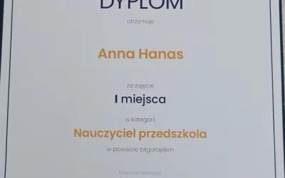 Miło nam poinformować iż Pani Anna Hanas, nauczycielka Samorządowego Przedszkola nr 2, otrzymała I miejsce w kategorii „Nauczyciel przedszkola” w powiecie biłgorajskim w plebiscycie Kuriera Lubelskiego 2025.