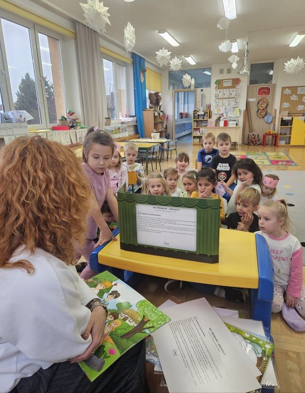 W ostatnim tygodniu nasze 5-latki z wielkim zainteresowaniem i skupieniem wysłuchały baśni, legend oraz przygód Treflika i Treflinki przedstawionych troszeczkę w innej formie - mianowicie zapoznaliśmy się z japońską sztuką czytania obrazów, czyli teatrem Kamishibai.