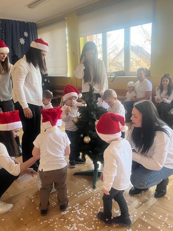 Najpierw gwiazdeczki zaśnieżyły świat, potem dzieci ubrały choinkę, znalazły świąteczną gwiazdkę, zagrały kolędę na instrumentach, a na koniec dekorowały pierniczki, a wszystko to przy ogromnym wsparciu rodziców. Była super zabawa.