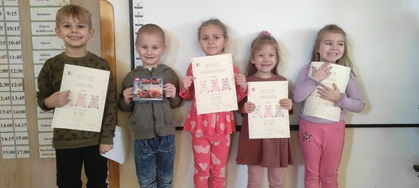 Pięcioro Skrzatów wzięło udział w XVI edycji konkursu plastycznego " Mój miś" organizowanego przez filię Biblioteki dla Dzieci i Młodzieży w Biłgoraju. W kategorii dzieci 5-6 letnich nagrody zdobyli Antoś i Anastazja. Gratulujemy zwycięzcom, jesteście dumą naszej grupy, życzymy dalszych sukcesów.