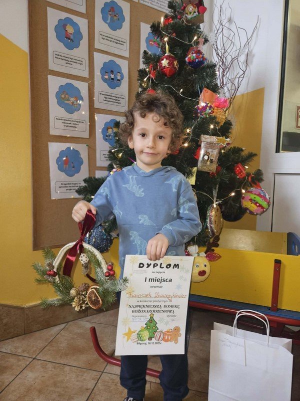 W naszym przedszkolu odbył się konkurs plastyczny pt. „Najpiękniejsza ozdoba bożonarodzeniowa”. Przedszkolaki wykazali się dużą kreatywnością i pomysłowością, tworząc barwne oraz oryginalne prace z różnych materiałów.
