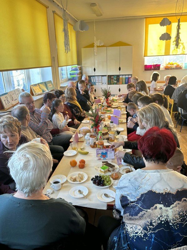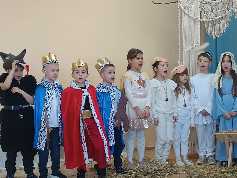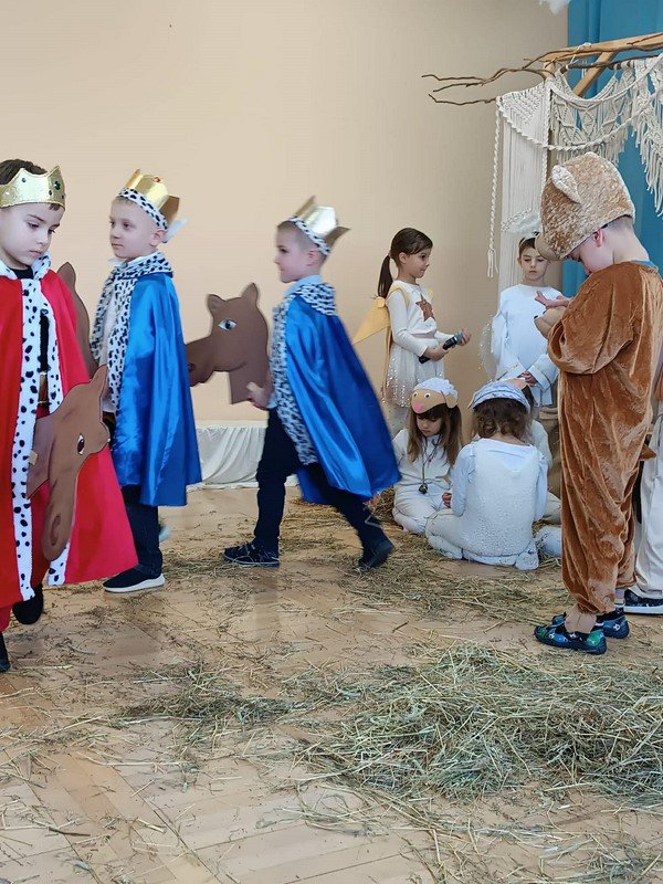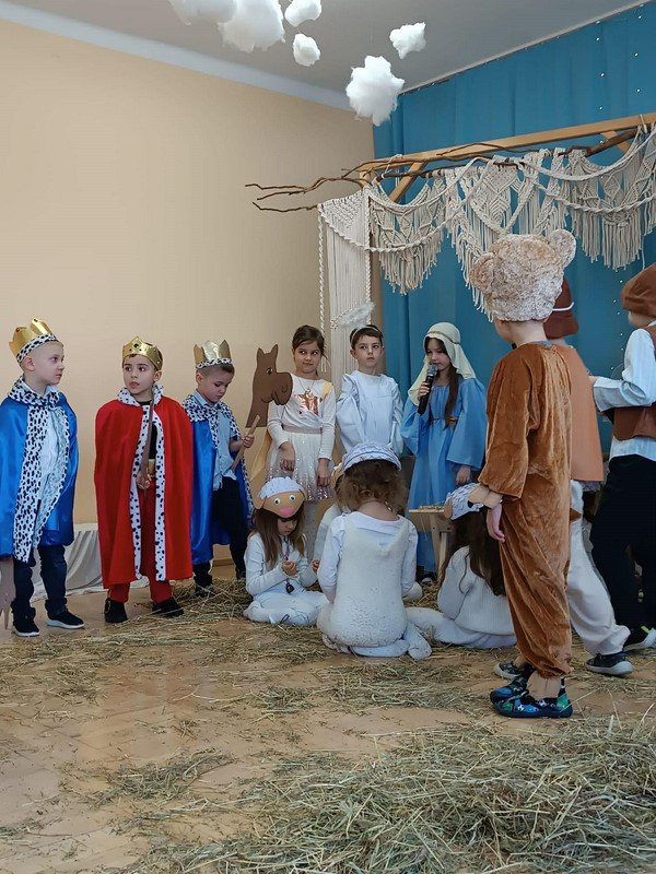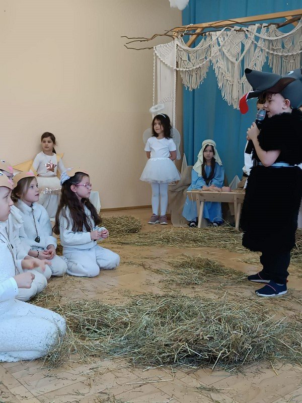Z tej wyjątkowej okazji przedszkolaki zaprezentowały jasełka pt. „Ach, co za noc” oraz zaśpiewały piękną, wzruszającą piosenkę dedykowaną babciom i dziadkom. Po części artystycznej odbył się poczęstunek, a goście otrzymali drobne upominki w postaci kalendarzy.