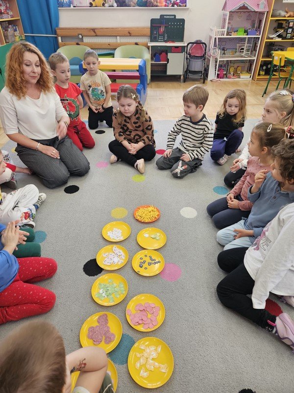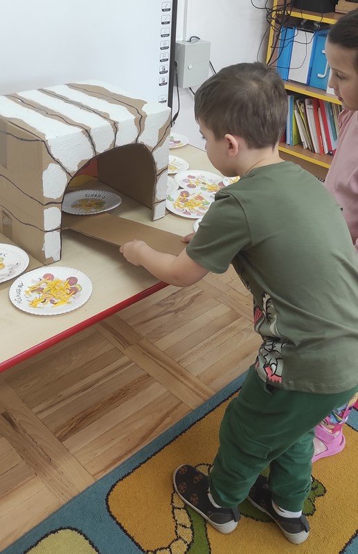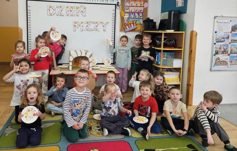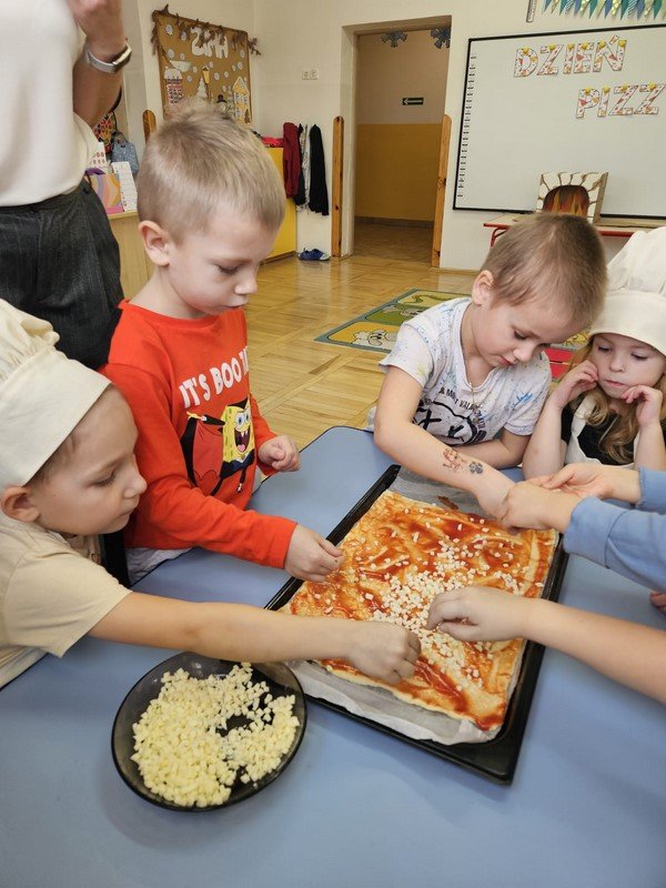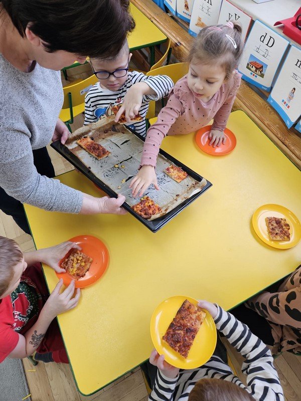 Szukaliśmy Włoch na mapie Europy, poznaliśmy niektóre włoskie słowa, muzykę oraz inne tradycyjne potrawy tego kraju. Dzieci zatańczyły pizzowy taniec, dobierały produkty do swojej pizzy, którą wypiekały w piecu na niby . Na zakończenie zajęć Skrzaty w grupach wykonały pizzę, którą następnie degustowaliśmy.