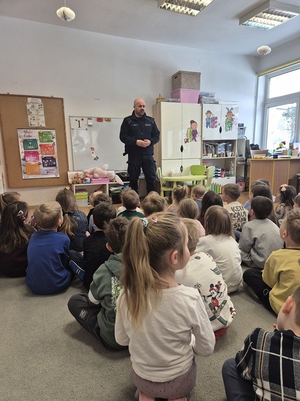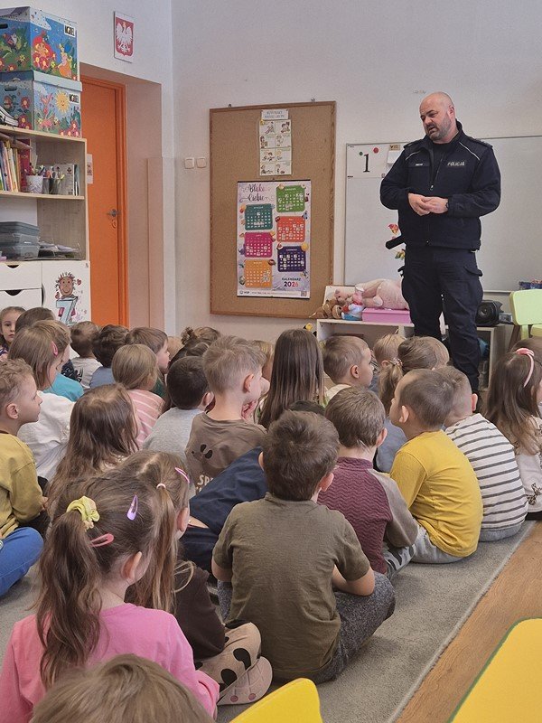 Spotkanie z policjantem, które miało miejsce w naszym przedszkolu, było doskonałą okazją do tego, aby porozmawiać z dziećmi o bezpieczeństwie w czasie zbliżających się ferii zimowych.