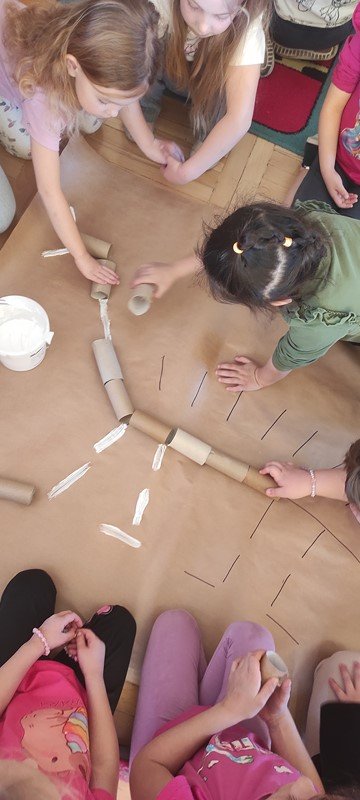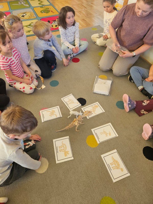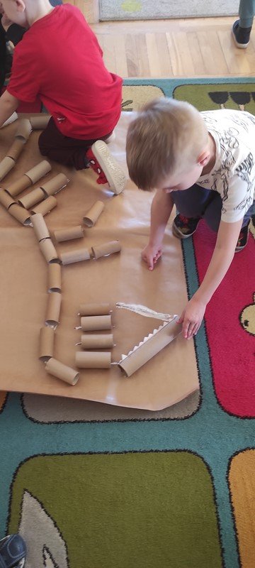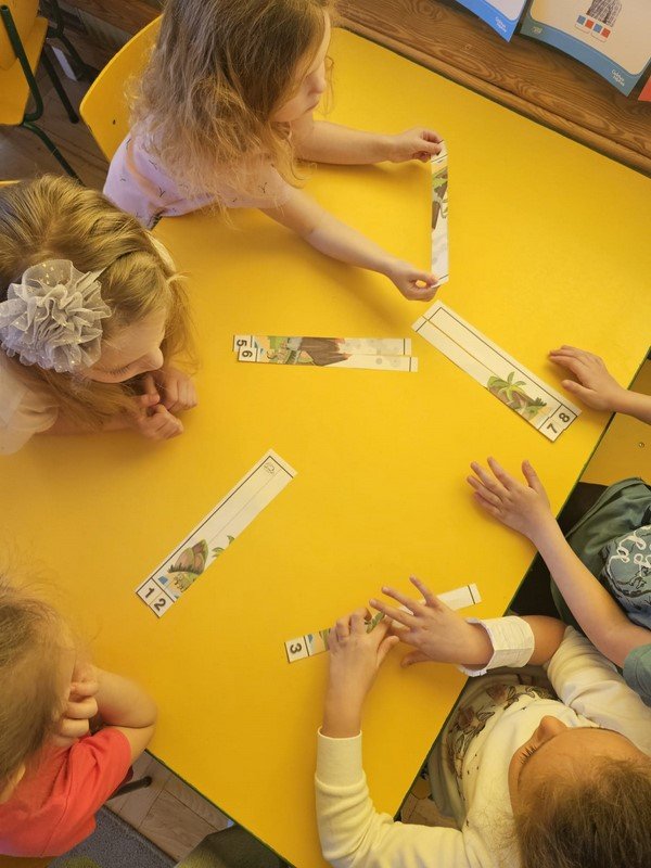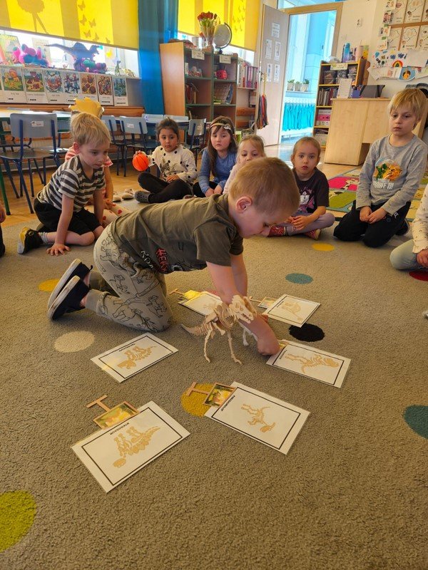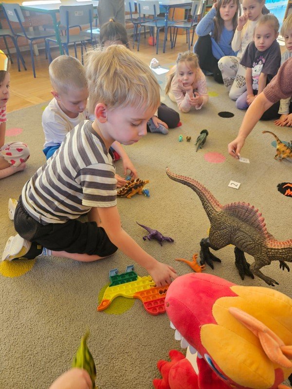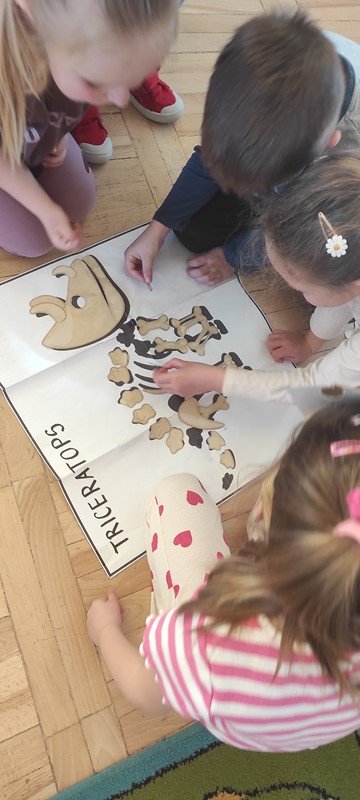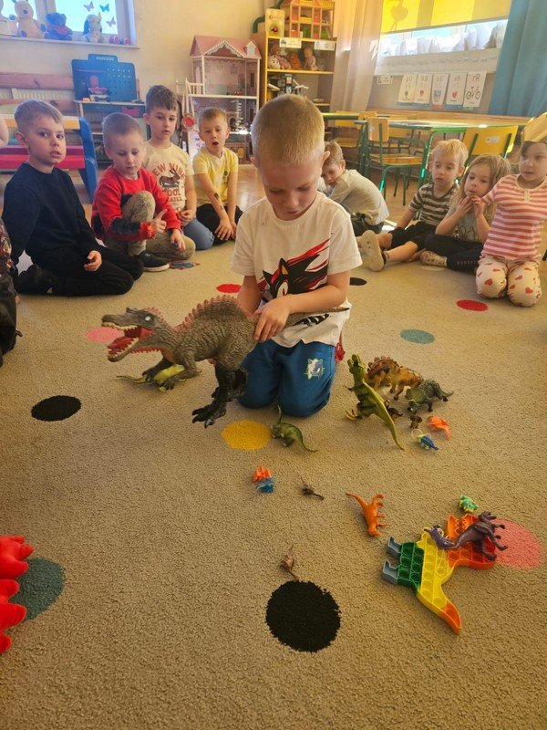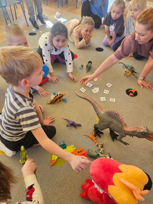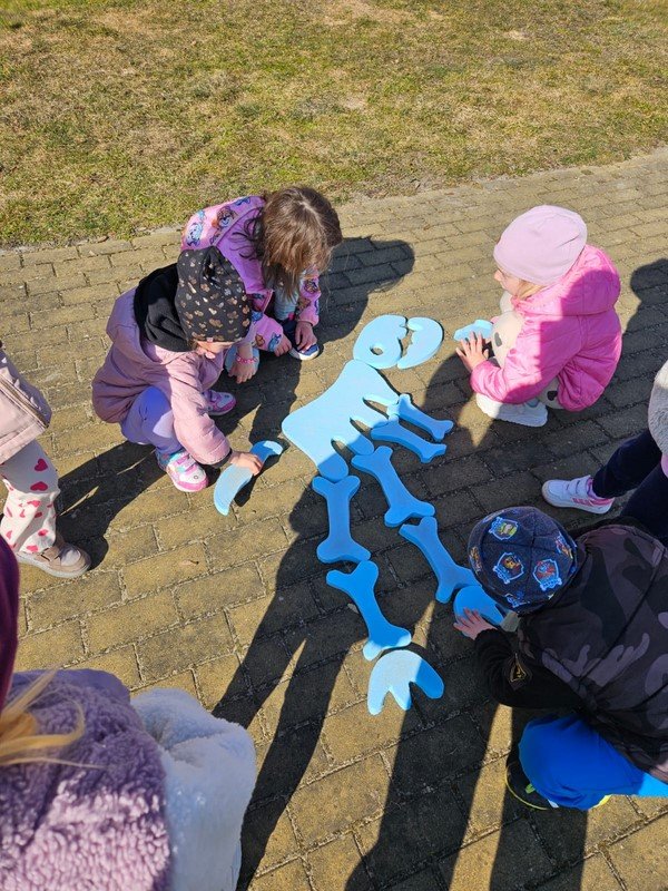 Nasze 5-latki cały tydzień zgłębiały tajemnice życia dinozaurów. Codziennie odbywały się inne aktywności, które kształtowały umiejętności matematyczne, plastyczno- techniczne, czytelnicze i społeczno - emocjonalne opierające się przede wszystkim na zgodnej i kreatywnej współpracy.