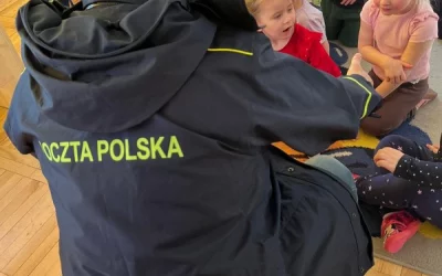 Dzisiaj grupę SÓWKI odwiedził Pan Listonosz z Poczty Polskiej. Opowiedział dzieciom o swojej pracy, o drodze listu i paczki,a także przywiózł paczkę dla dzieci wypełnioną słodkościami.
