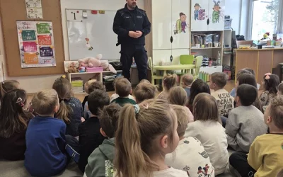 Spotkanie z policjantem, które miało miejsce w naszym przedszkolu, było doskonałą okazją do tego, aby porozmawiać z dziećmi o bezpieczeństwie w czasie zbliżających się ferii zimowych.
