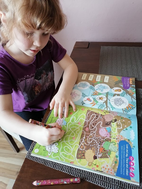Paulinka z grupy Tygryski dalej chętnie uczy się angielskiego. Gratulujemy postępów.