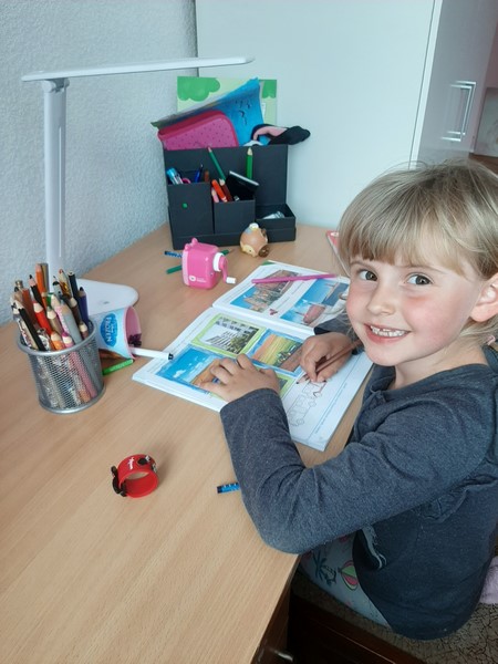 • Tak Martynka z grupy "Jeżyki" pracuje w domu