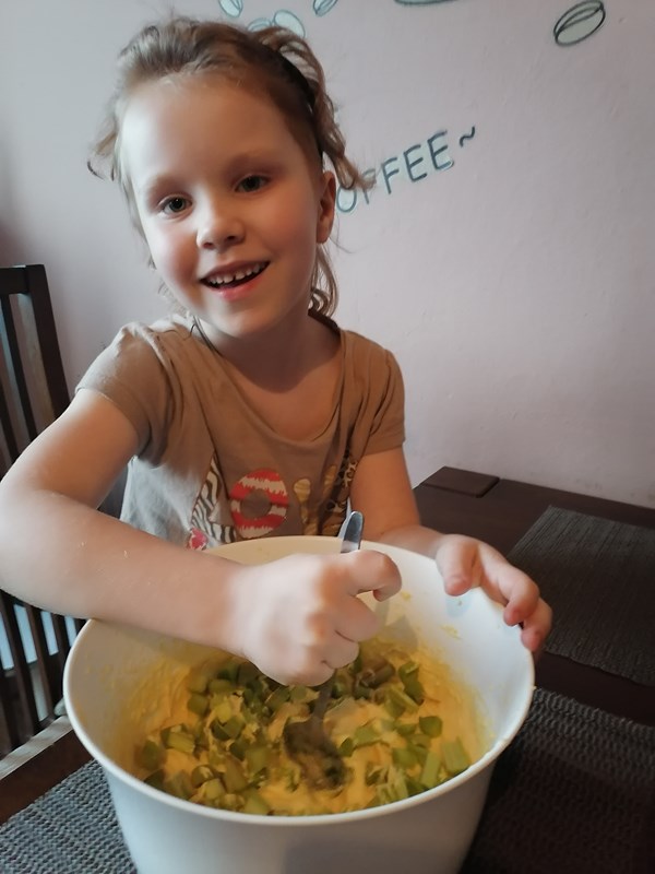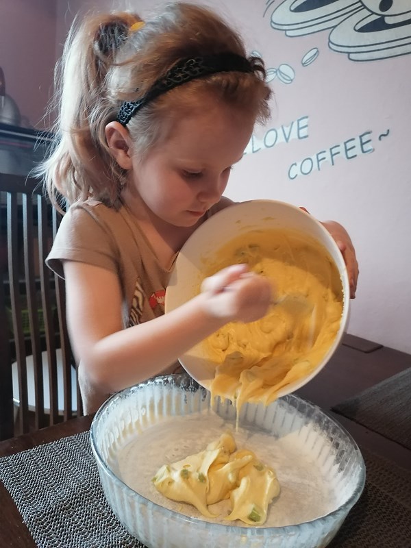 • Paulinka z grupy "Tygryski" piecze tort dla mamy