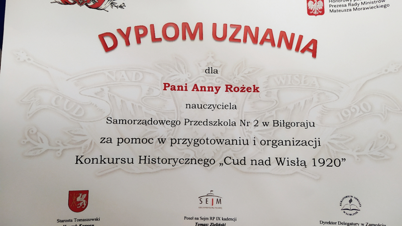 15 sierpnia 2020 roku, w setną rocznicę Bitwy Warszawskiej, odbyło się uroczyste podsumowanie konkursu plastyczno-literackiego "Cud nad Wisłą", zorganizowanego przez Komitet Obchodów 100-lecia Bitwy Warszawskiej w Tomaszowie Lubelskim oraz Kuratorium Oświaty w Lublinie Delegatura w Zamościu. Konkurs skierowany był do dzieci z powiatu biłgorajskiego, zamojskiego, tomaszowskiego i hrubieszowskiego. Głównym celem konkursu było kształtowanie wśród dzieci i młodzieży postaw patriotycznych. Komisja Konkursowa spośród wszystkich prac wyłoniła 70, których wykonawcy otrzymali tytuł laureata i nagrodę rzeczową. Laureatkami konkursu zostały Karinka Kozioł i Maja Kurowska, które wykonały plakaty upamiętniające obchody 100-lecia Bitwy Warszawskiej.