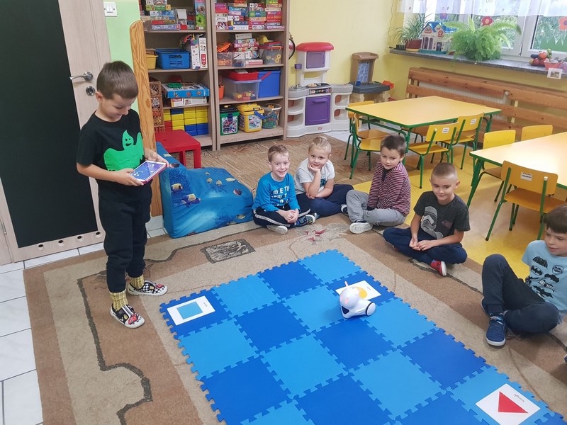 W ramach tygodnia kodowania oraz zajęć z jezyka angielskiego dzieci z grupy Kotki miały okazję nauczyć się programować robota Photona.