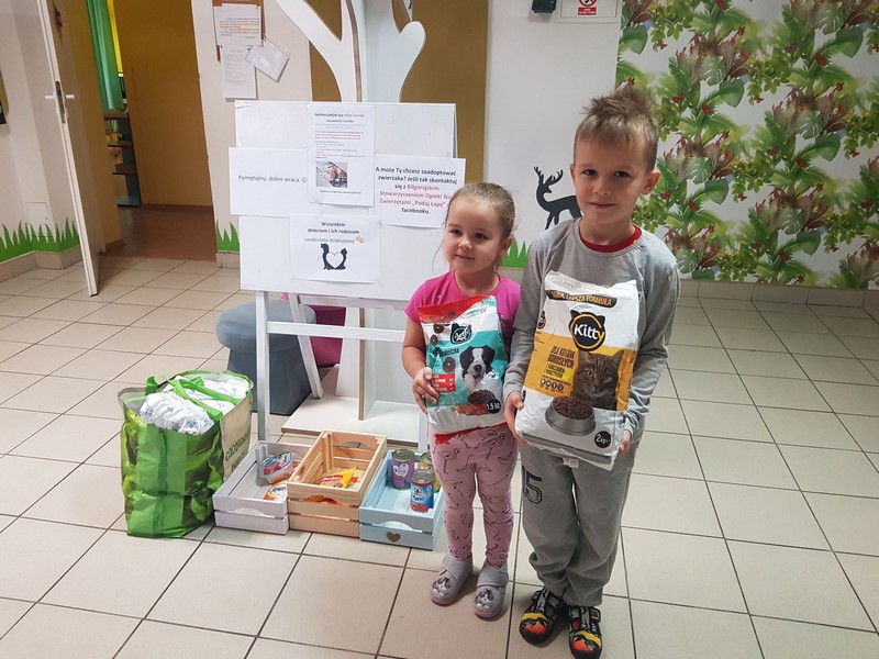 Od 2 do 20 listopada w naszym przedszkolu po raz drugi zorganizowana została zbiórka darów dla psów i kotów z Biłgorajskiego Stowarzyszenia Opieki Nad Zwierzętami "Podaj Łapę". Mimo, że w w tym roku trwała ona zaledwie 3 tygodnie nasze przedszkolaki wraz ze swoimi rodzicami po raz kolejny wspomogli akcję przynosząc koce, karmę, podkłady itp. Bardzo dziękujemy w imieniu stowarzyszenia oraz zwierząt za włączenie się do pomocy.