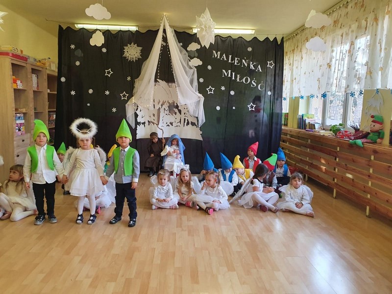 W ostatnim tygodniu przed Świętami dzieci z grupy III przedstawiły krótką inscenizację pt. "Maleńka miłość" oraz zatańczyły i zaśpiewały przed młodszymi kolegami i koleżankami.