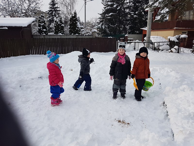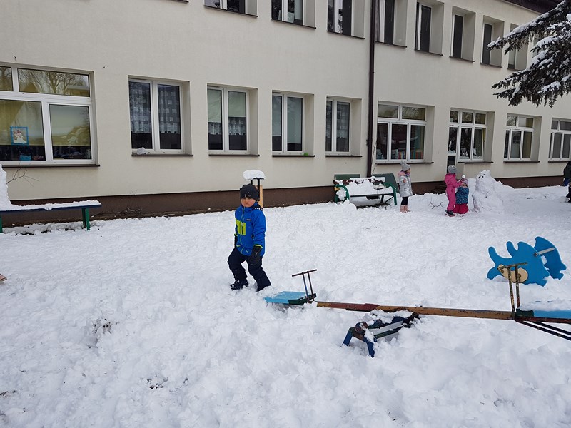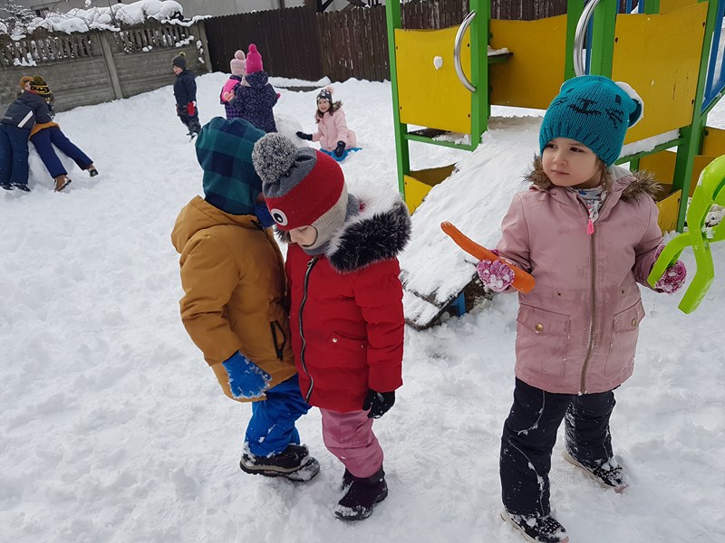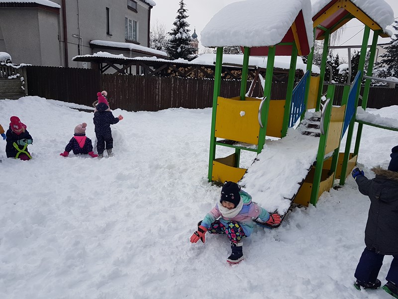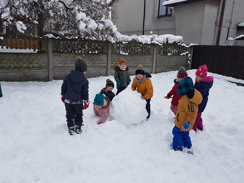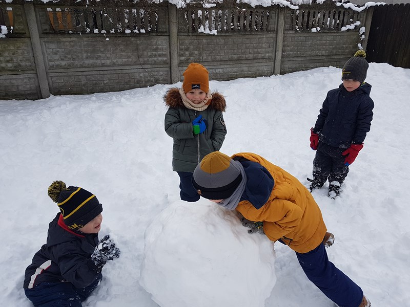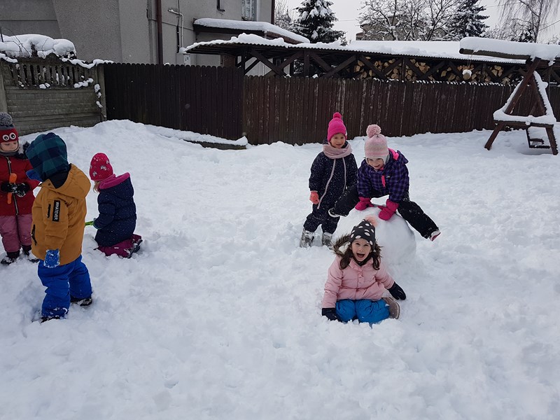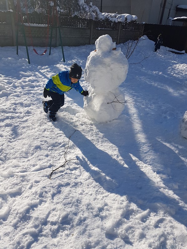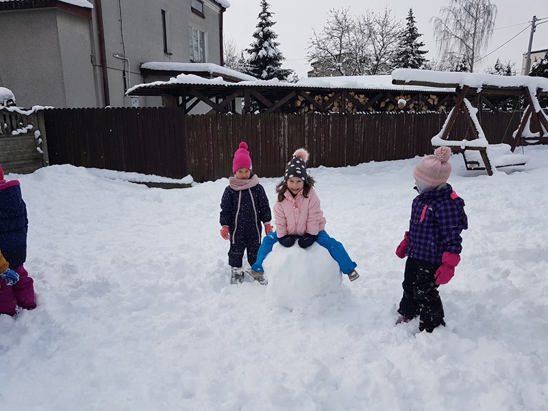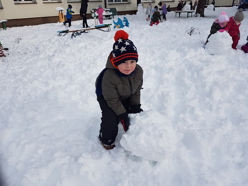 Korzystając z uroków tegorocznej zimy, przedszkolaki z grupy „Motylki” bawiły się na pokrytym śniegiem placu zabaw. Dzieci najpierw ulepiły bałwana, potem była bitwa na śnieżki, oczywiście z zachowaniem zasad bezpieczeństwa. Niektórzy w białym puchu robili aniołka. Zimowe zabawy na świeżym powietrzu są świetną rozrywką po zajęciach dydaktycznych w sali.