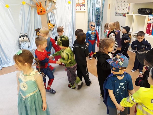 Bal karnawałowy dla przedszkolaków to niezwykły, długo wyczekiwany dzień. Jest atrakcją bardzo lubianą przez dzieci, dostarczającą im wielu przeżyć i radości. Tak też było tym razem, 10 stycznia, kiedy w naszym przedszkolu odbył się bal. Przedszkolaki w przepięknych strojach świetnie się bawiły przy rytmicznej i skocznej muzyce. W przerwie między tańcami był czas na słodki poczęstunek, przygotowany przez rodziców.