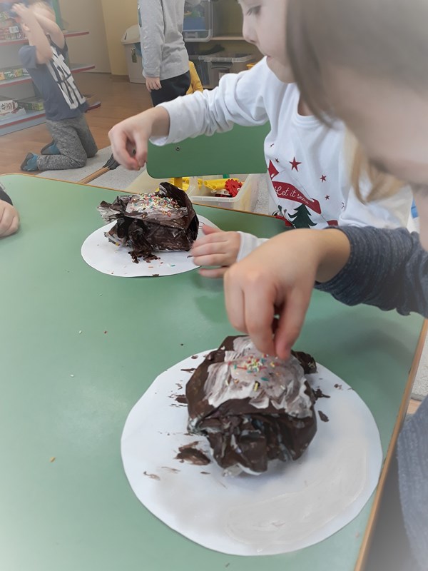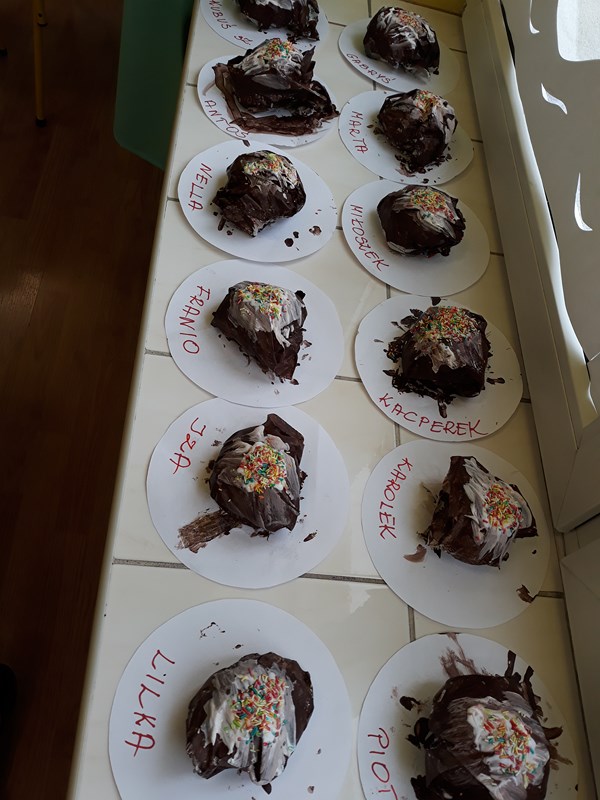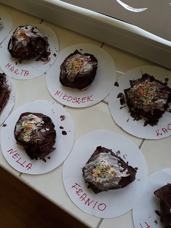 Zgodnie z tradycją w Tłusty Czwartek każdy powinien zjeść pączka. W naszym przedszkolu od samego rana unosił się zapach smażonych pączków, które przygotowywały dla nas panie kucharki. W ciągu dnia poznaliśmy historię pączka i zwyczaj obchodzenia Tłustego Czwartku. Natomiast w ramach zajęć plastycznych wykonaliśmy apetyczne pączki, które wyglądały jak prawdziwe. Gdy nadeszła pora podwieczorku wszystkie dzieci z apetytem zjadały pączki. Była to okazja do świetnej zabawy, ale też do przypomnienia i kultywowania tradycyjnych zwyczajów.