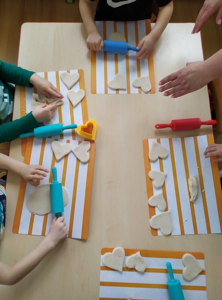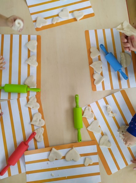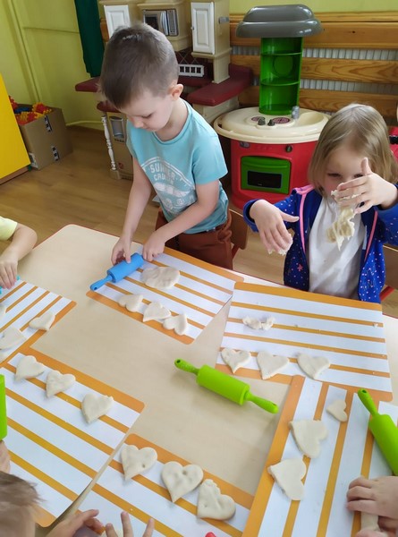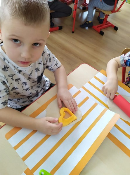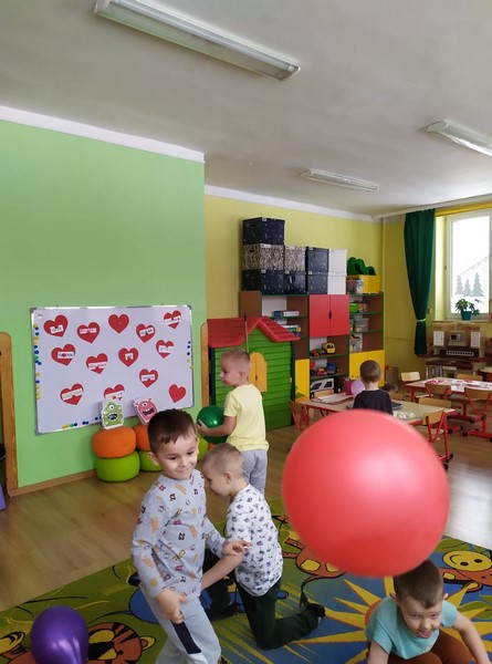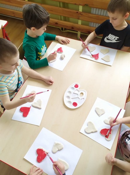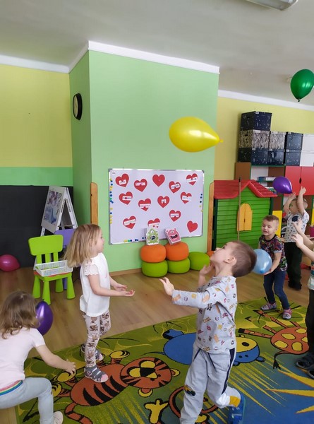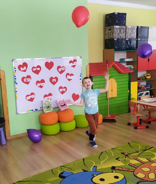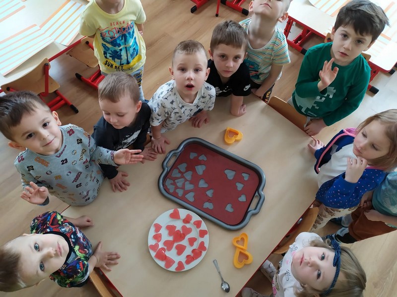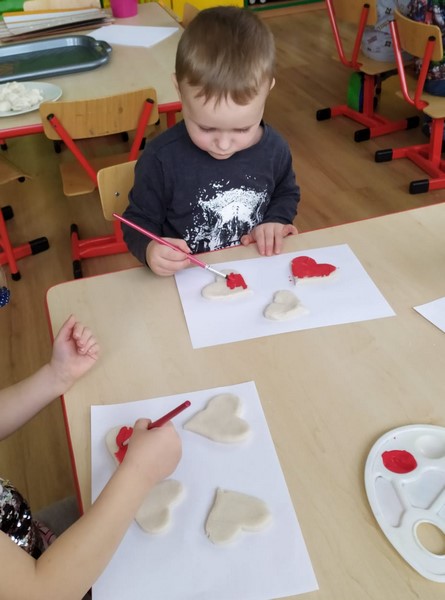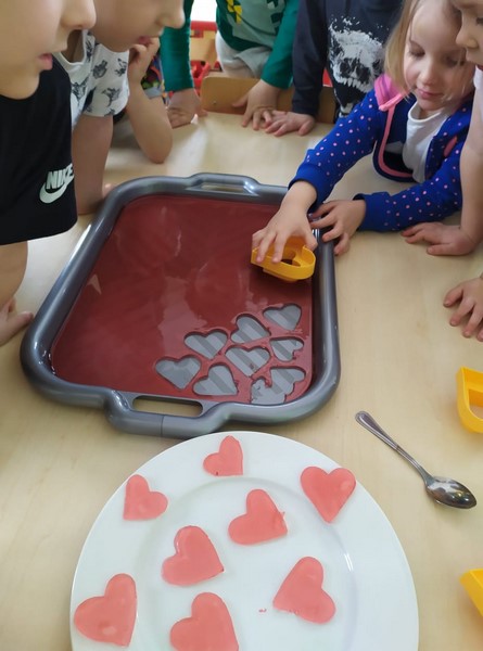 W tym dniu Smerfy zrobiły piękne serca dla rodziców z masy solnej. Były też serduszkowe galaretki. Dużo radości sprawiły nam zabawy z balonami i tańce. Na koniec wykonaliśmy walentynkowe prace plastyczne.