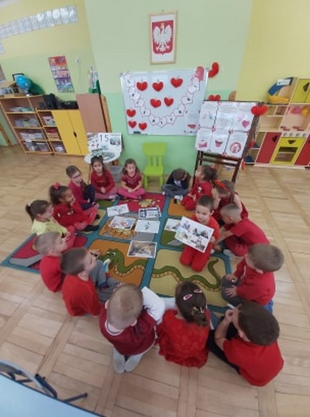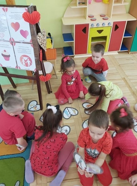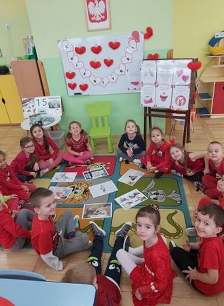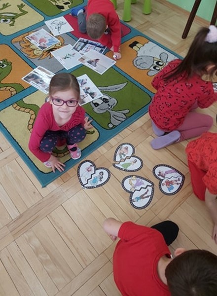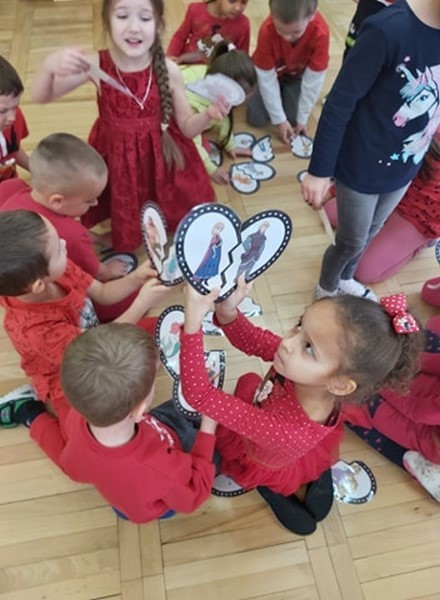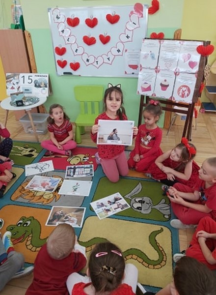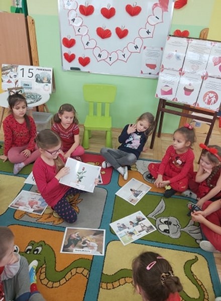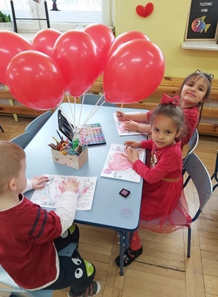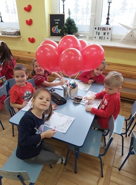 Walentynkowo w grupie Tęczowych Rybek zrobiło się w poniedziałek 15 lutego. Tego dnia, dzieci poznały historię walentynek oraz tradycje walentynkowe. Przy dźwiękach piosenki "Serduszko"- narysuj mi piosenkę stworzyły przepiękne kartki walentynkowe dla swoich rodziców. Dzieci grały w walentynkowe, bajkowe memory, słuchały piosenek oraz wiersza o tej tematyce. Atmosfera w grupie w tym dniu była bardzo serdeczna i pełna miłości.