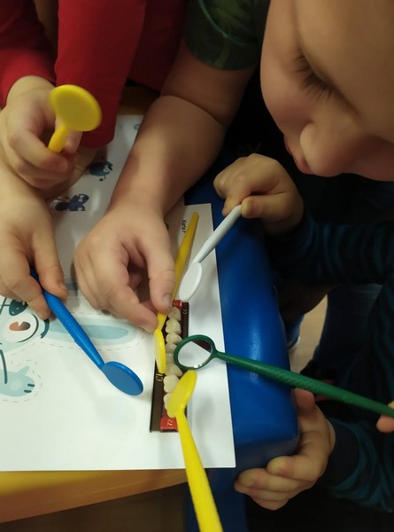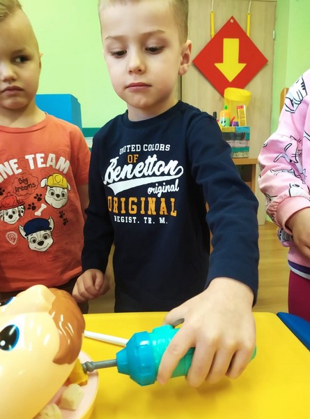 Smerfy realizują projekt Czysciochowe Przedszkole. Zrealizowaliśmy temat "Mycie zębów", dowiedzieliśmy się dużo ciekawych rzeczy na temat higieny jamy ustnej. Razem z Króliczkiem Higienkiem zrobiliśmy doświadczenie "Czy jajka i zęby są do siebie podobne?" Sprawdziliśmy Ciastolinkowi zęby i borowaliśmy aby wyleczyć jego ubytki.