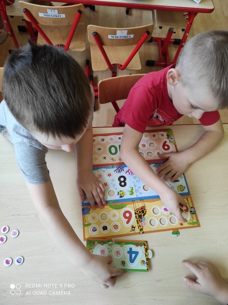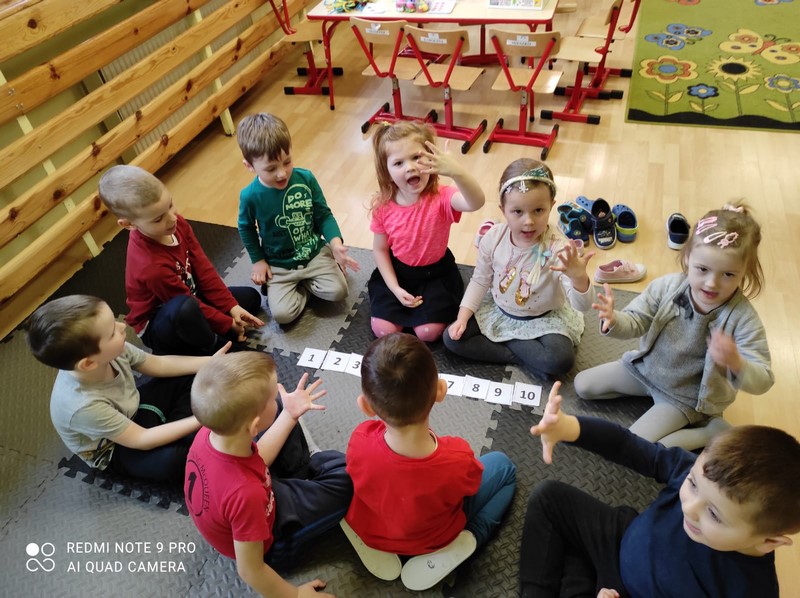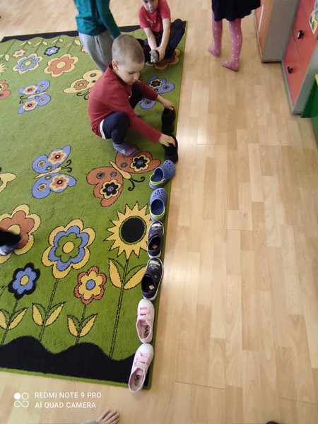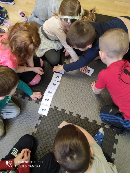 W piątek 12. 03 obchodziliśmy w grupie dzień królowej nauk - MATEMATYKI. Bawiąc się przeliczaliśmy, dzieci wspaniale klasyfikowały i mierzyły przedmioty za pomocą stóp i butów. Dzieci wspaniale poradziły sobie z rozpoznawaniem cyfr i układaniu ich w szeregu rosnącym, a najwięcej przyjemności sprawiły przedszkolakom zabawny ruchowe przy muzyce oraz zadania multimedialne.