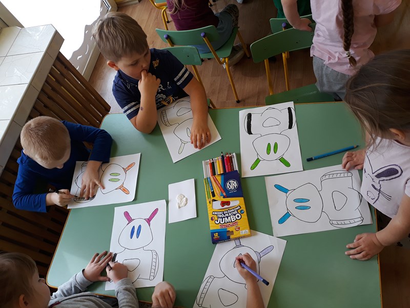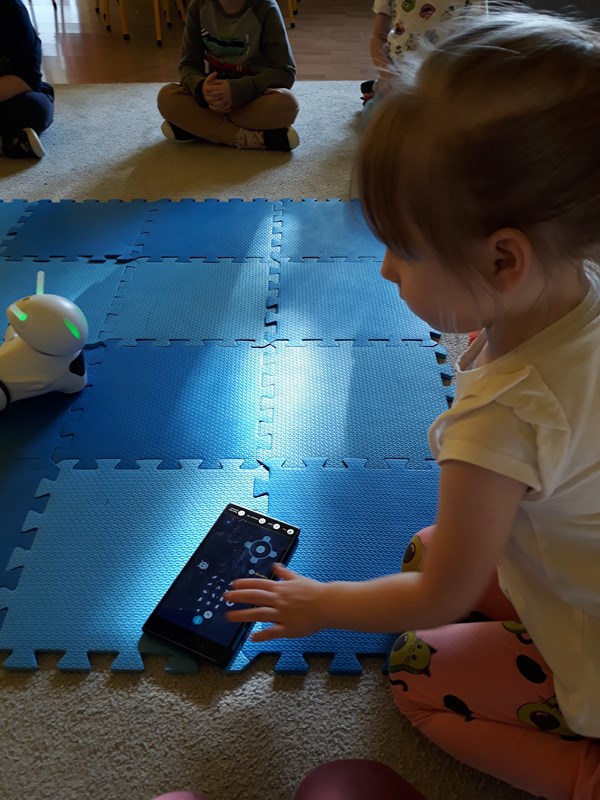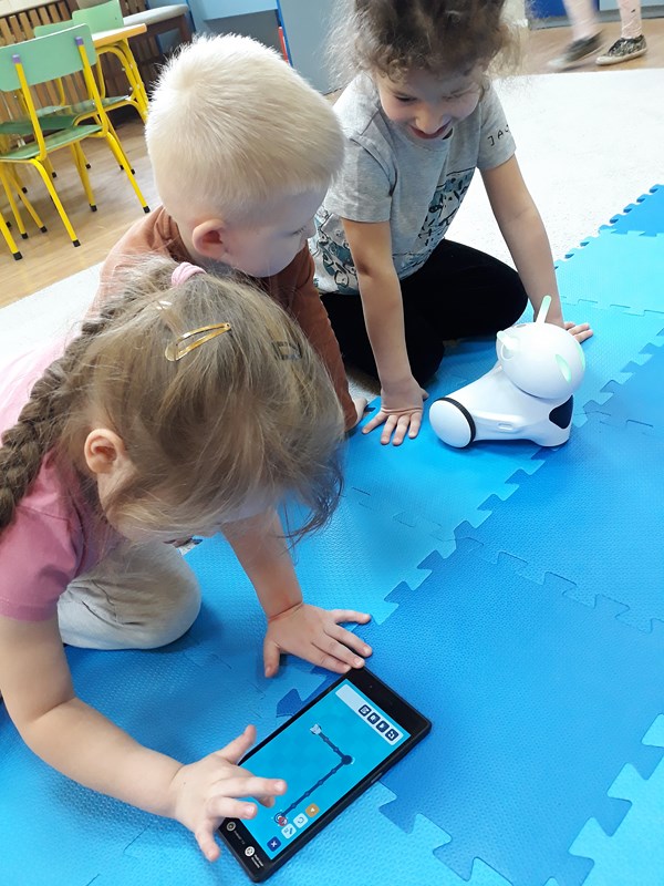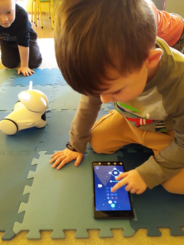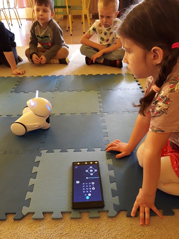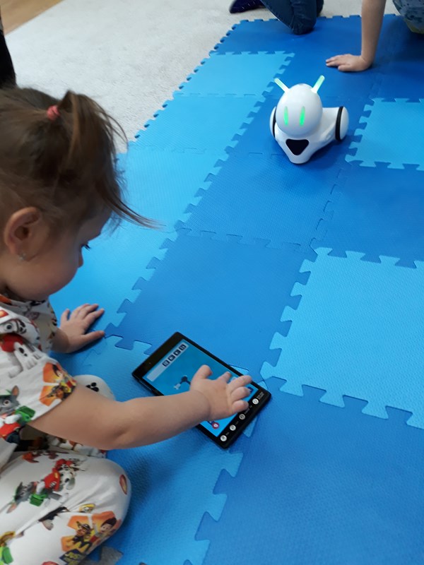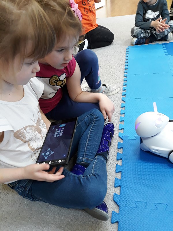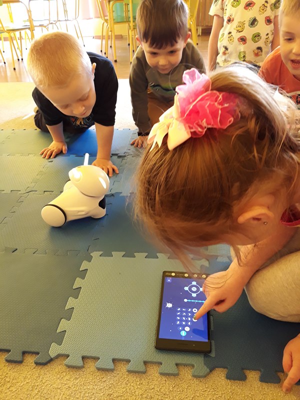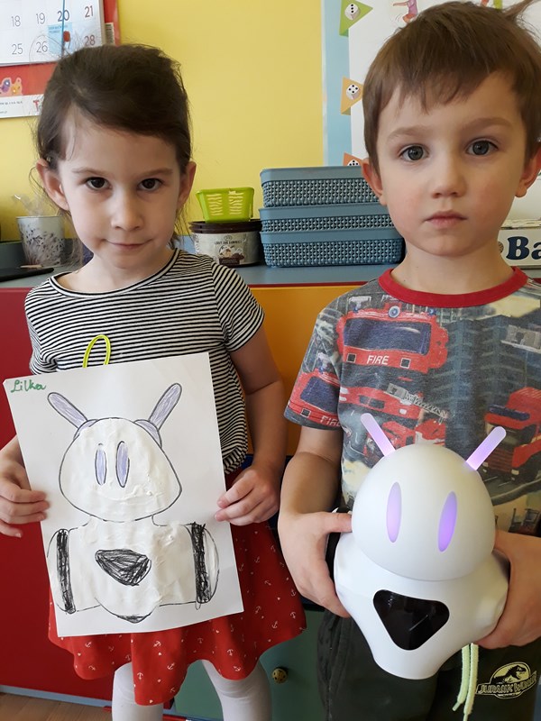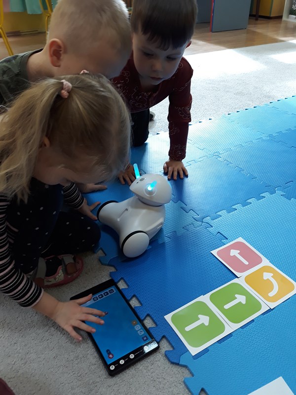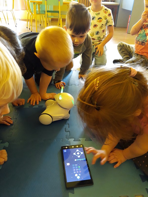 W ramach innowacji pedagogicznej "TAK dla TIK" dzieci z grupy "Motylki" kilkakrotnie już uczestniczyły w zajęciach z robotem Photon. Jest to robot, którego głównym zadaniem jest wprowadzenie dzieci w świat najnowszych technologii, rozwijanie w nich zdolności logicznego myślenia i kreatywności, a także nauka podstaw programowania. Przedszkolaki poznały funkcje robota takie jak zmiana koloru światła i głosu, uczyły się poruszać robotem według zaprogramowanego kodu, a także przygotowały dla Photona niespodzienkę - jego portret. Robot jest już stałym gościem w grupie "Motylków", co jest dla przedszkolaków wielką frajdą.