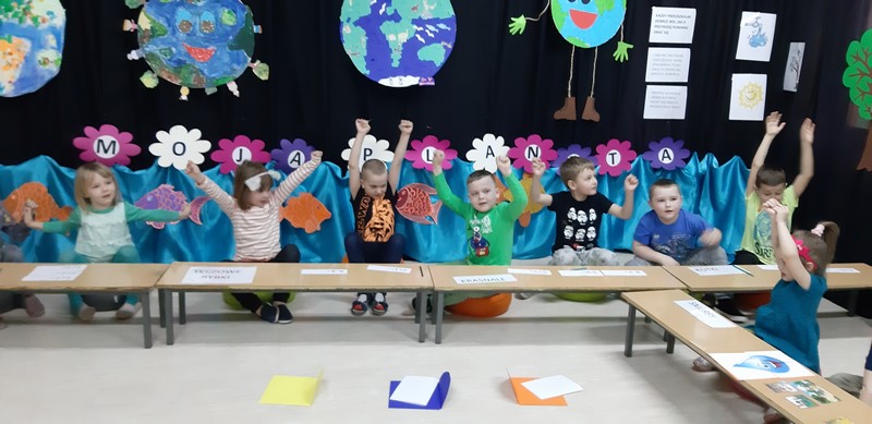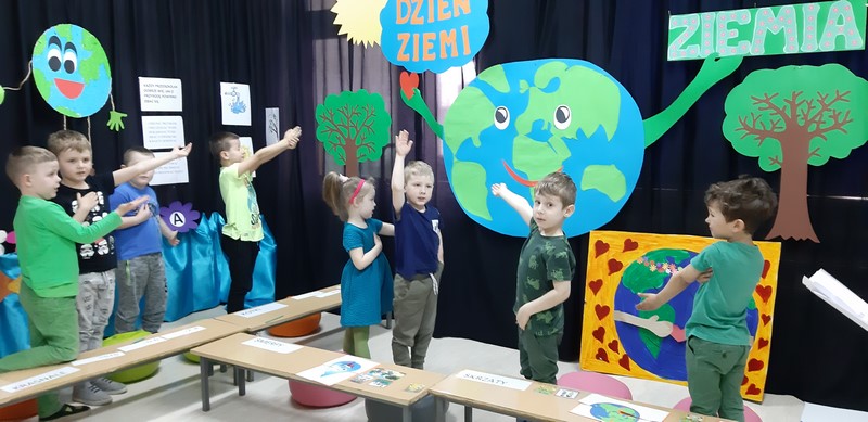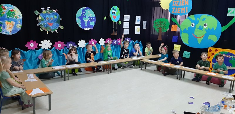 Dzieci odpowiadały na pytania jak należy postępować aby Ziemia była czysta, zadbana i aby ludziom i zwierzętom żyło się na niej zdrowo: