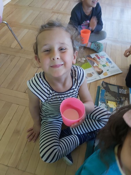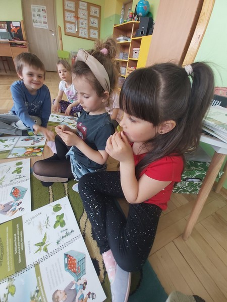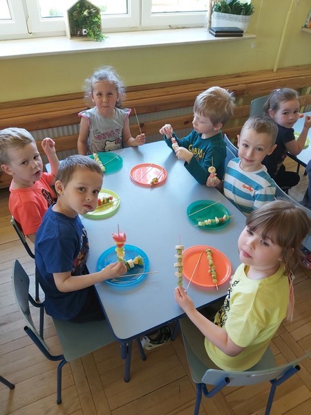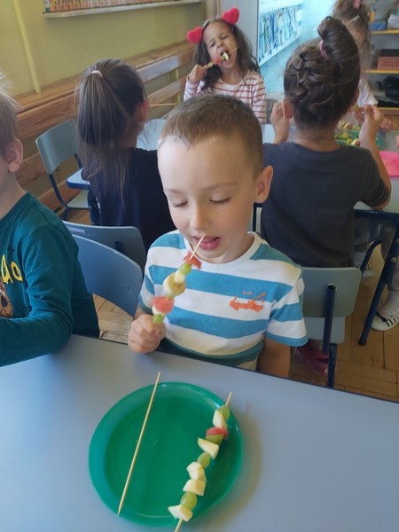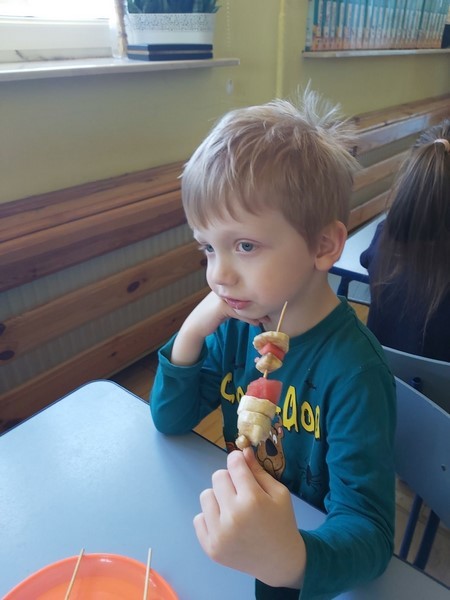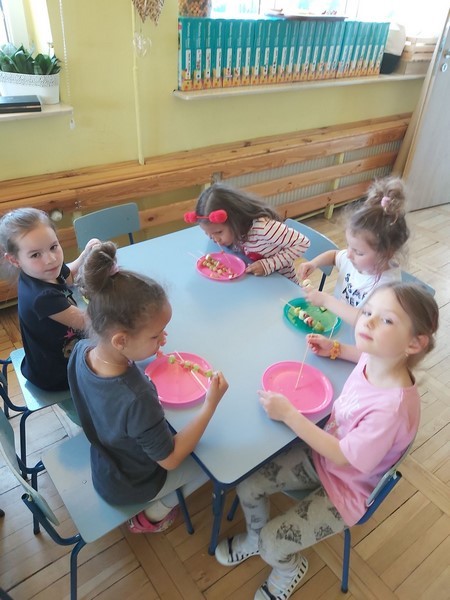 Grupa „Tęczowe Rybki” brała udział w ogólnopolskim programie edukacyjnym dla przedszkoli „Skąd się biorą produkty ekologiczne”. Celem programu było zwiększenie świadomości i wiedzy na temat rolnictwa ekologicznego oraz budowanie właściwych nawyków żywieniowych od najmłodszych lat. Podczas realizacji zajęć dzieci obejrzały film edukacyjny, nauczyły się skąd się biorą produkty ekologiczne, dlaczego warto je wybierać, jakie są zalecenia zdrowego stylu życia oraz jak przestrzegać zasad higieny. Dzieci smakowały produkty ekologiczne ,wykonały pracę plastyczną a na koniec programu wykonały szaszłyki owocowe.