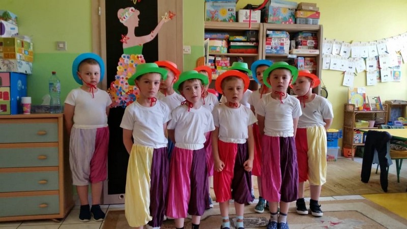 Grupa chłopców "Kotków" przygotowała dla swoich Rodziców upominki: dla taty breloczek do kluczyków dla mamy zrobiliśmy misia oraz samodzielnie wyhodowaliśmy z nasionek kwiatki aksamitki, które dzieci zobowiązały się podlewać całe lato. Chłopcy przygotowali również taniec w kolorowych kapeluszach na krzesełkach, który możecie zobaczyć klikając na poniższy link.