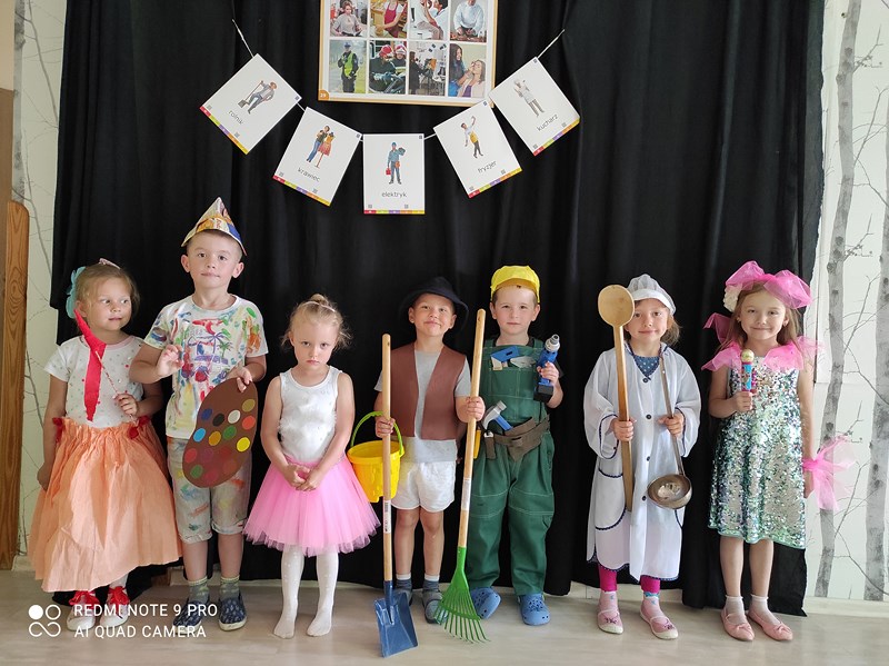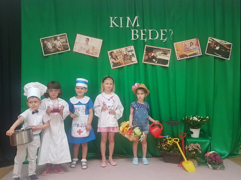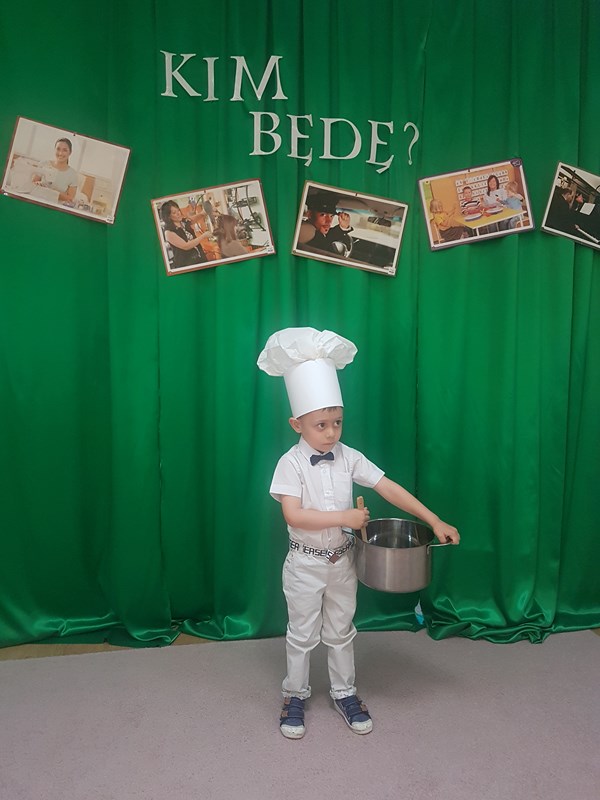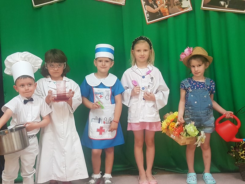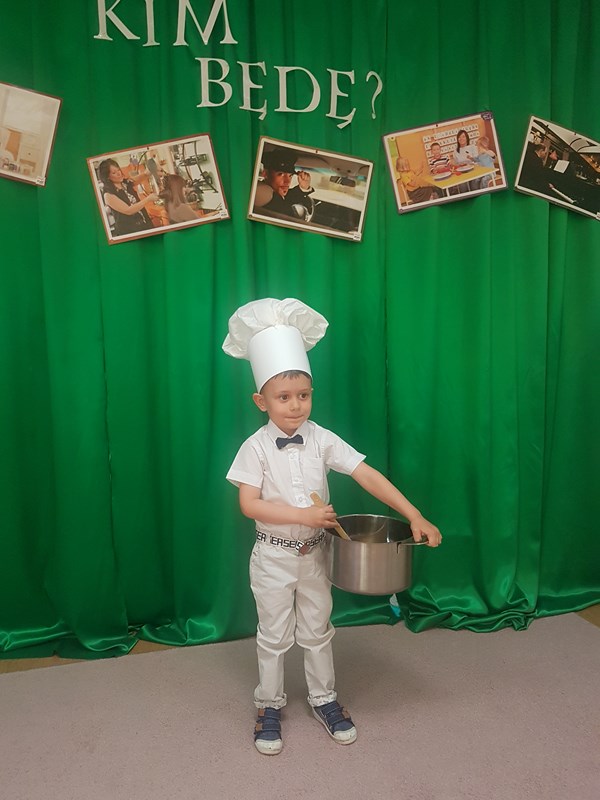 W ramach realizacji programu preorientacji zawodowej, w piątek 11 czerwca w naszym przedszkolu odbył się pokaz mody pt. „Kim będę, gdy dorosnę”. Celem pokazu było pobudzanie i rozwijanie zainteresowań dzieci oraz stymulowanie ich prozawodowych marzeń. Dzieci przygotowały stroje związane z poszczególnymi zawodami. Wśród nich były m.in.: malarz, pielęgniarka, lekarka, laborantka, ogrodnik i ogrodniczka, kucharz. Prezentacja strojów sprawiała uczestnikom wiele radości, a przedszkolna publiczność nie zapomniała o nagrodzeniu brawami. Wszyscy uczestnicy otrzymali dyplomy i upominki. Dziękujemy za pomoc w przygotowaniu strojów rodzicom i paniom nauczycielkom z poszczególnych grup.