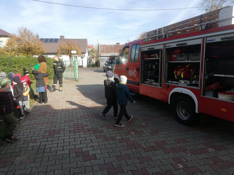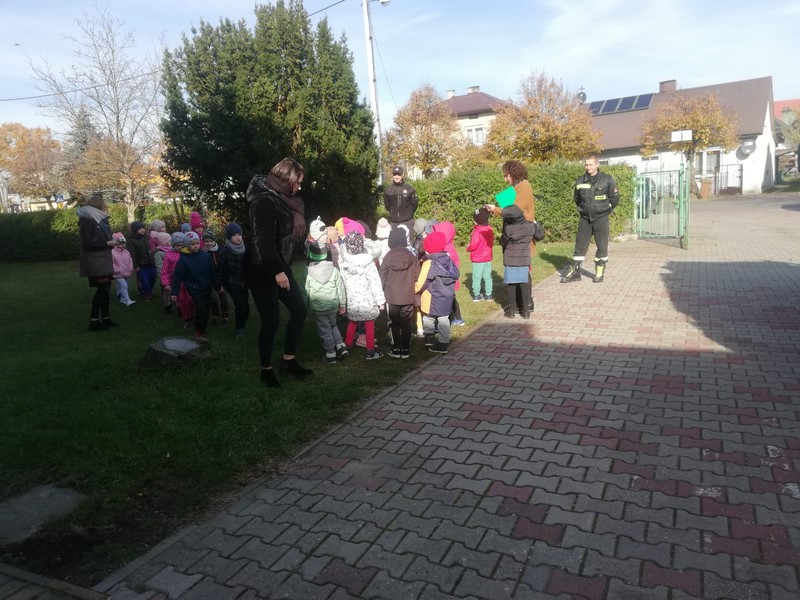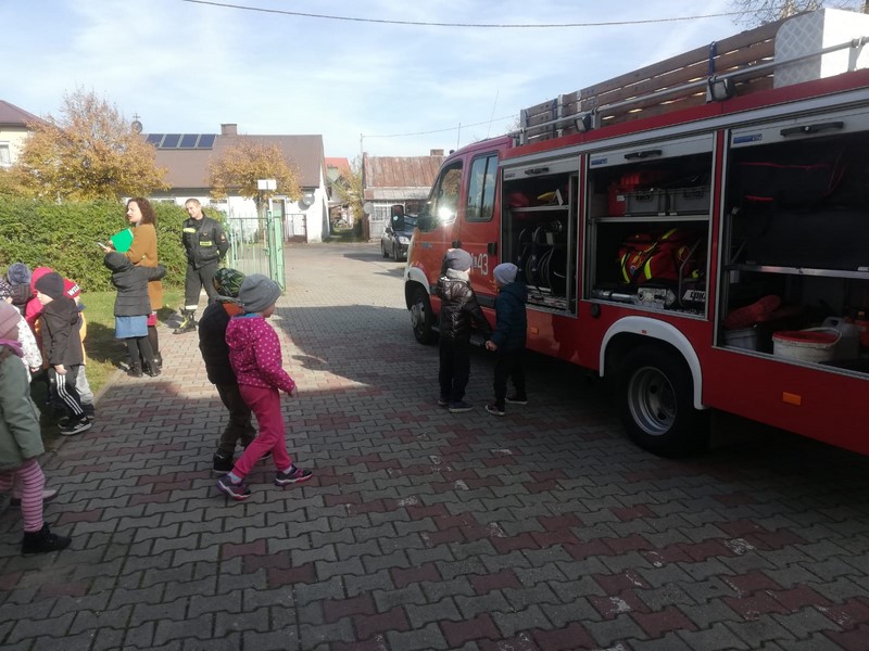 W trosce o poprawę bezpieczeństwa w naszym przedszkolu, w dniu 26 października, zostały przeprowadzone praktyczne ćwiczenia ewakuacji pracowników i dzieci z budynku przedszkola. Celem akcji było nabywanie przez dzieci umiejętności właściwych zachowań w sytuacji zagrożenia oraz zapoznanie ich z zasadami bezpiecznej ewakuacji. Nad prawidłowym przebiegiem ewakuacji czuwali strażacy z PSP z Biłgoraja. Po zakończeniu akcji dzieci miały okazję obejrzeć wóz strażacki oraz usłyszeć sygnał dźwiękowy pojazdu.