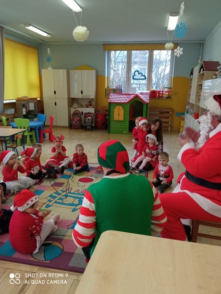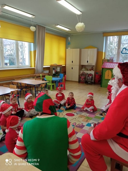 Wizyta Świętego Mikołaja w naszym przedszkolu to jeden z najbardziej oczekiwanych przez dzieci dni w roku. Wszystkie dzieci już od samego rana nadsłuchiwały „mikołajkowych” dzwoneczków. Wszystkie dzieci bardzo przeżywały to spotkanie. Każda grupa przygotowała dla Mikołaja występ, po którym Święty rozdawał dzieciom prezenty. Spotkanie z niezwykłym gościem sprawiło dużo przyjemności. Na zakończenie zrobiliśmy pamiątkowe zdjęcia, a Mikołaj obiecał, że odwiedzi dzieci już za rok!