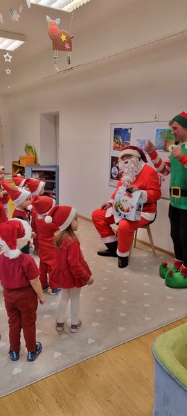 Jak co roku nasze przedszkole odwiedził św. Mikołaj wraz ze swoim pomocnikiem. Na tę okazję dzieci z grupy "Misie" przygotowały piosenki, które zaśpiewały podczas wizyty specjalnego gościa. Wszystkie dzieci dostały piękne prezenty, a na pamiątkę tego wydarzenia zrobiły sobie pamiątkowe zdjęcie z Mikołajem. Do zobaczenia za rok św. Mikołaju.