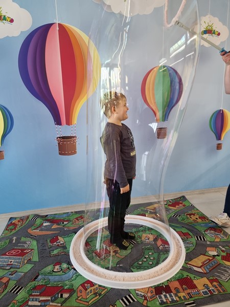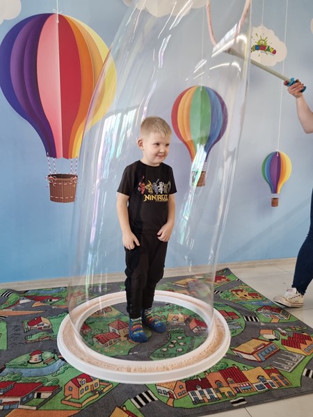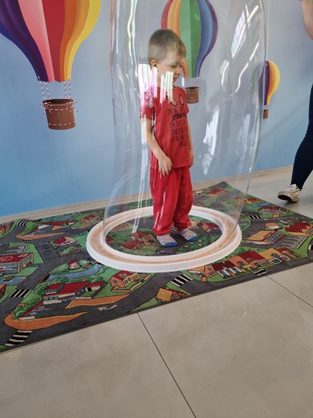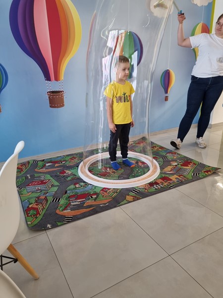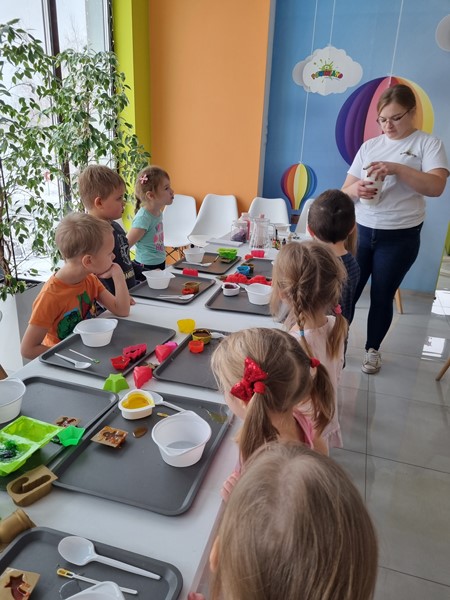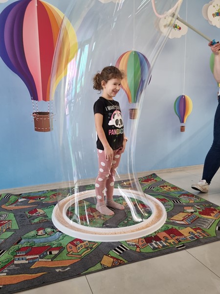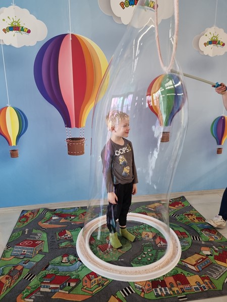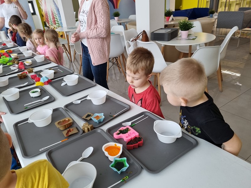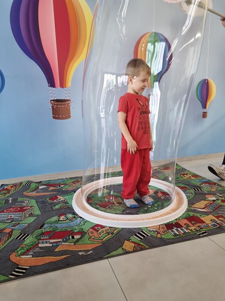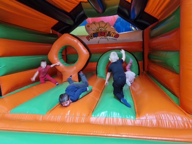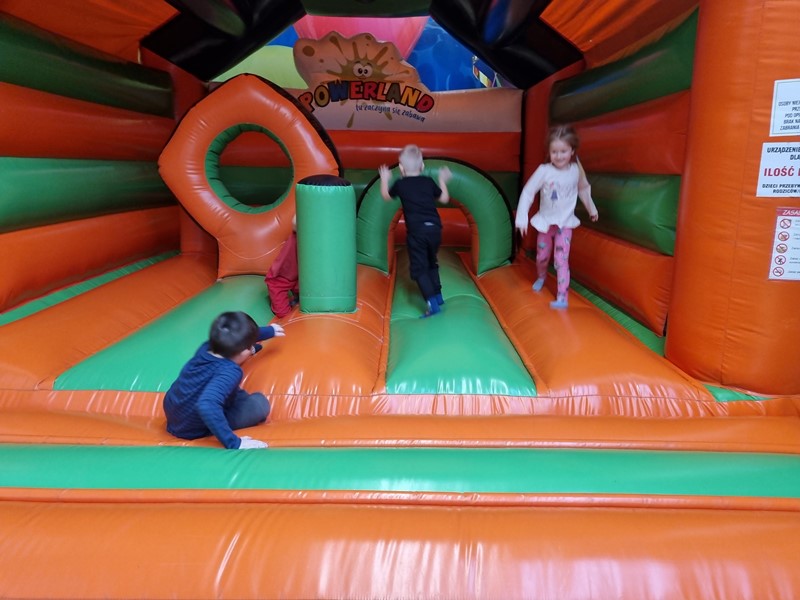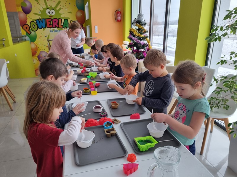 Grupa "Motylki" uczestniczyła w warsztatach "Kolorowe mydełka", które były zorganizowane w Powerlandzie. Dzieci miały okazję poznać sposób powstawania mydełka, własnoręcznie wykonując je i nadając im niepowtarzalny kształt, kolor i zapach. Niespodzianką były pokazy baniek mydlanych. Każdy przedszkolak wykazał się odwagą, wchodząc do takiej bańki. Będąc w Powerlandzie, skorzystaliśmy także z sali zabaw, pokonując labirynty, zjerzdżalnie i zanurzając się w basenach piłeczkowych.
