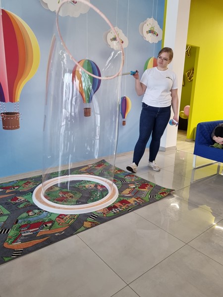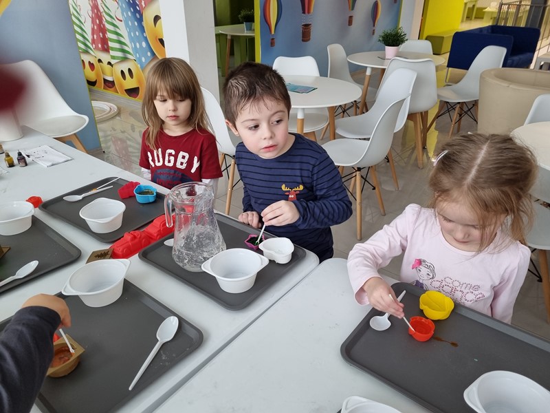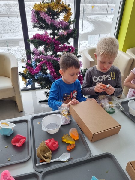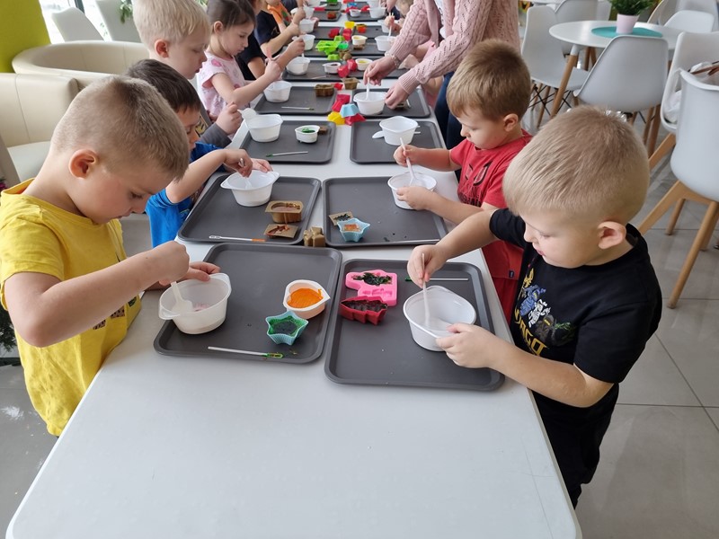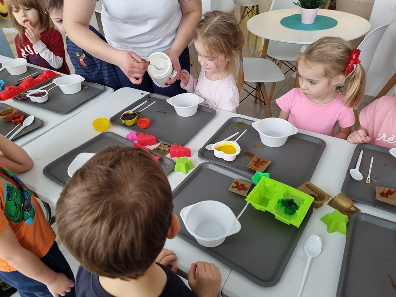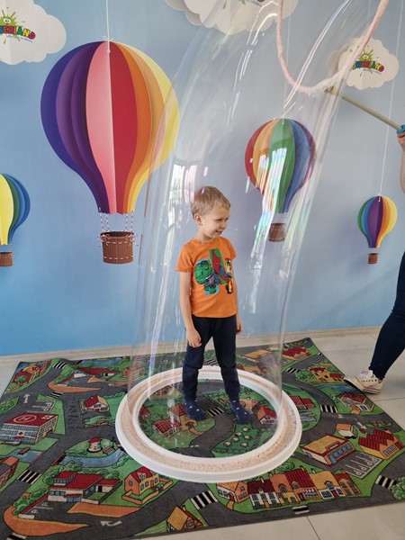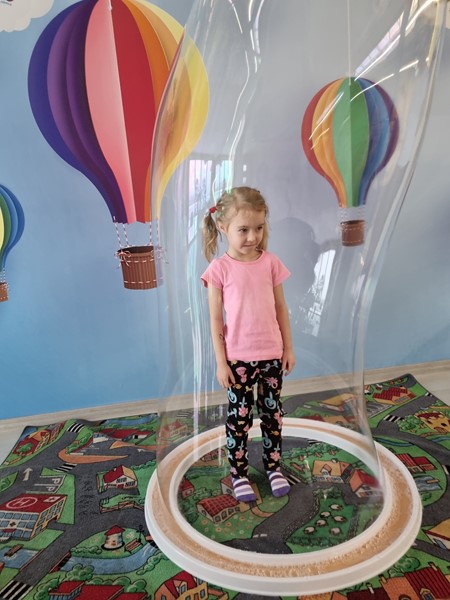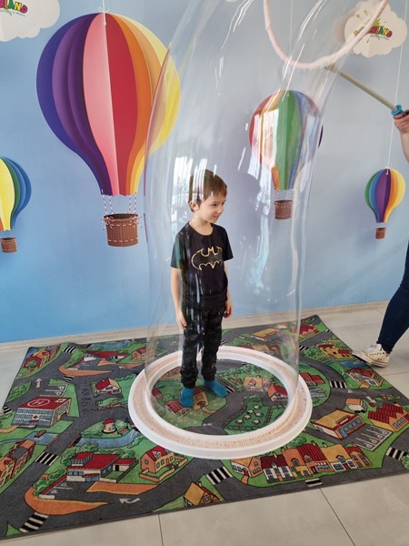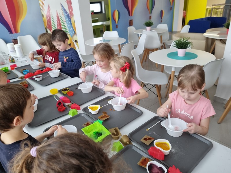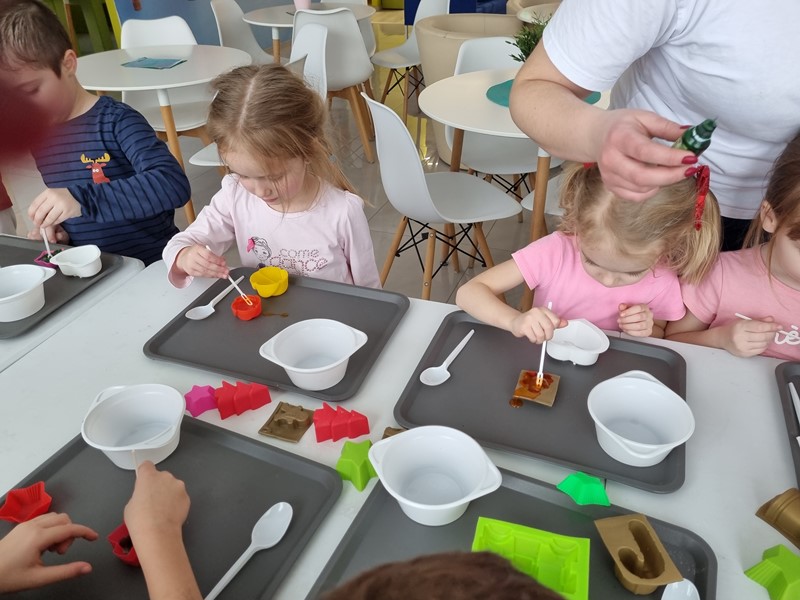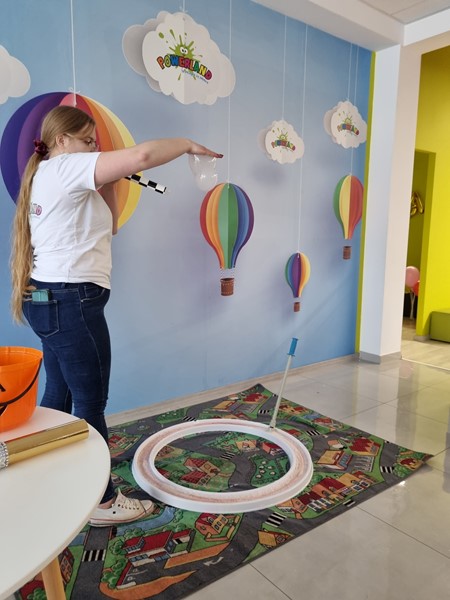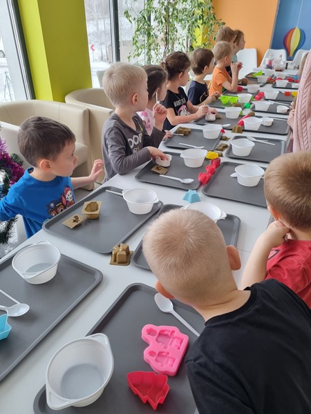 Grupa "Motylki" uczestniczyła w warsztatach "Kolorowe mydełka", które były zorganizowane w Powerlandzie. Dzieci miały okazję poznać sposób powstawania mydełka, własnoręcznie wykonując je i nadając im niepowtarzalny kształt, kolor i zapach. Niespodzianką były pokazy baniek mydlanych. Każdy przedszkolak wykazał się odwagą, wchodząc do takiej bańki. Będąc w Powerlandzie, skorzystaliśmy także z sali zabaw, pokonując labirynty, zjerzdżalnie i zanurzając się w basenach piłeczkowych.