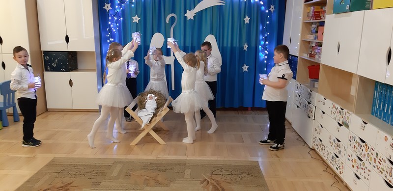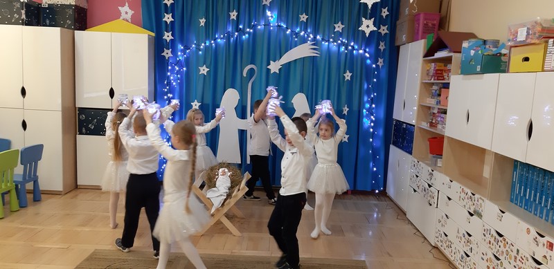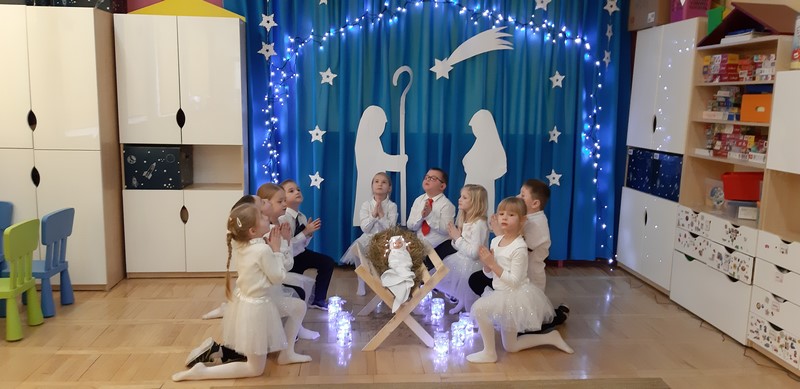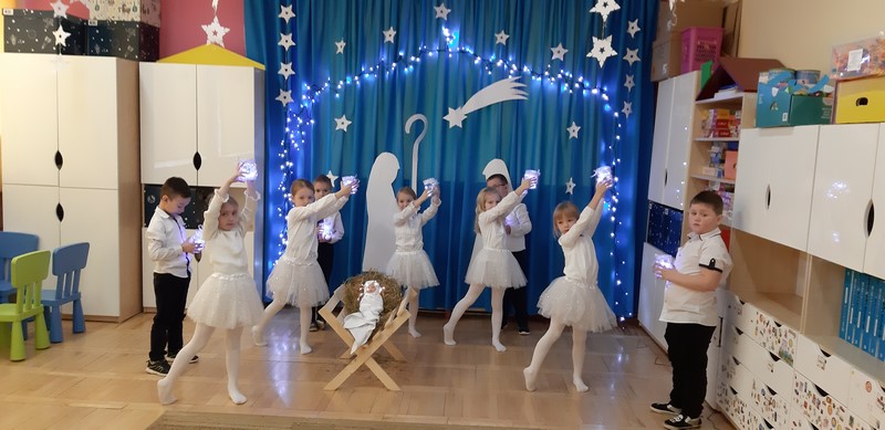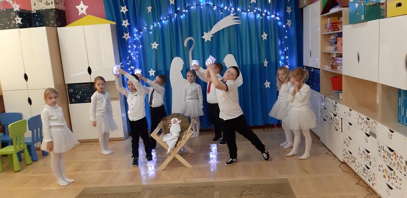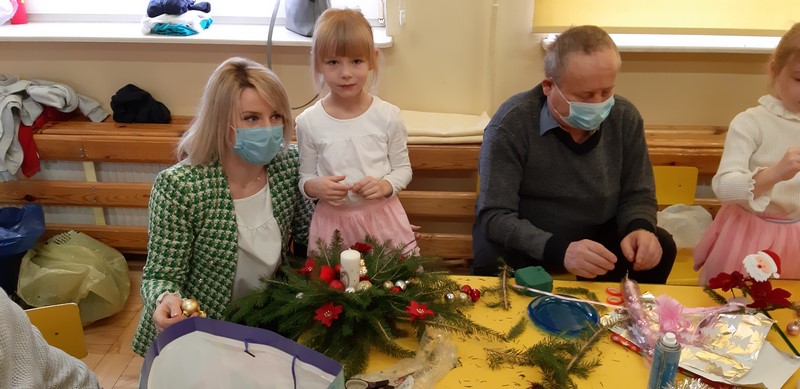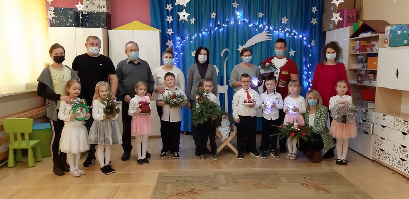 W grupie "Pszczółki" odbyły się warsztaty bożonarodzeniowe. Spotkanie rozpoczęło się pokazem tanecznym "Noel" dla rodziców. Podczas wykonywania świątecznych stroików śpiewano kolędy i pastorałki. Spotkanie zakończyło się wykonaniem wspólnego zdjęcia przy żłóbku małej dzieciny.