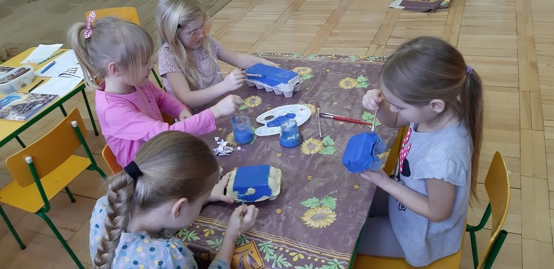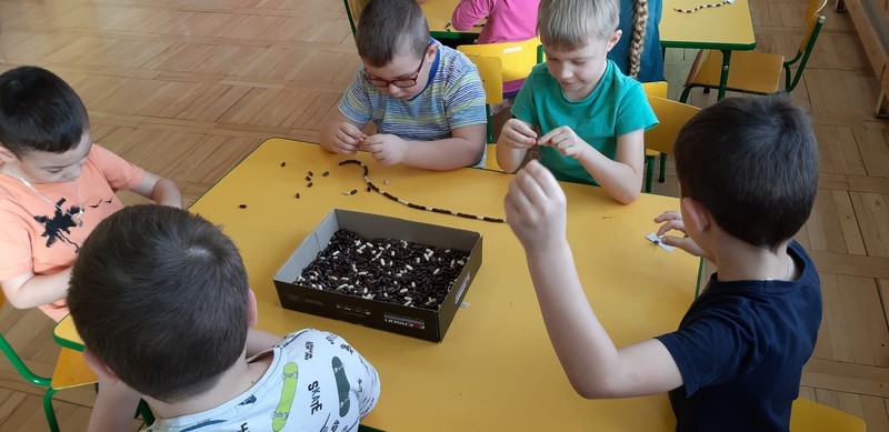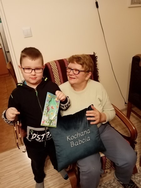 W związku ze zbliżającym się świętem dzieci z grupy Pszczółek postanowiły wykonać prezenty. Dla babci były to korale a dla dziadka skrzynka na drobiazgi. Pszczółki wręczają prezenty własnoręcznie wykonane w przedszkolu Babciom i Dziadkom składając życzenia.