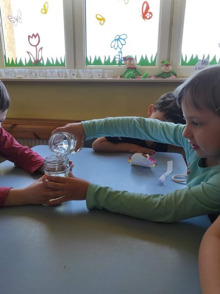 SKRZATY i ich eksperymenty z wodą. Tak świętowaliśmy Dzień wody. Była pogadanka o obiegu wody w przyrodzie, o tym jak bardzo jest potrzebna ludziom, roślinom i zwierzętom, a na koniec najlepsze.... zabawy z wodą...