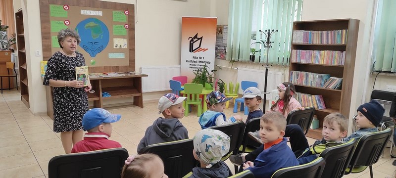W środowe przedpołudnie dzieci z grupy IV wybrały się w odwiedziny do Miejskiej i Powiatowej Biblioteki Publicznej. Tam Skrzaty poznały różne rodzaje książek, zasady ich wypożyczania oraz wysłuchały opowiadania o Basi i ochronie środowiska. Dzieci zadowolone i z nowymi wiadomościami czytelniczymi wróciły do przedszkola.