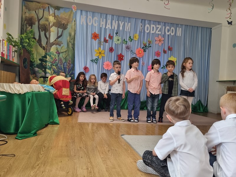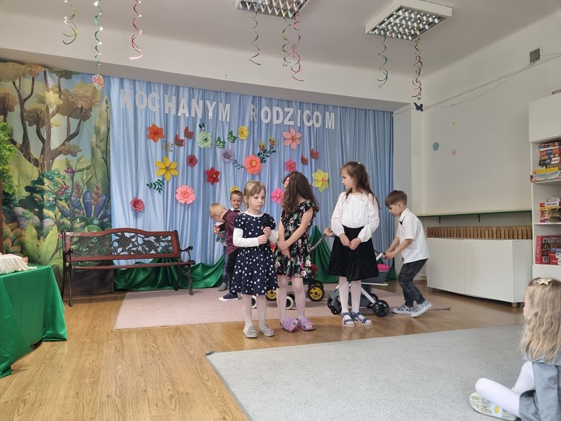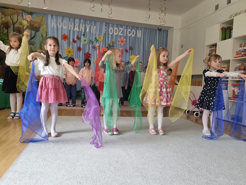 Dnia 26 maja dzieci z grupy "Motylki" zaprosiły do przedszkola najbliższe im osoby czyli rodziców. Pięknie wcieliły się w powierzone im role oraz pięknie zaśpiewały swoim gościom. Na koniec zatańczyły do piosenki Franka Sinatry. Wręczyły rodzicom własnoręcznie zrobione prezenty i zaprosiły do wspólnej zabawy.