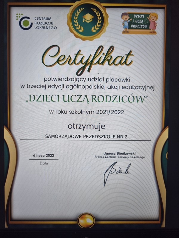 Bardzo dziękujemy za udział w akcji "Dzieci uczą rodziców" w roku szkolnym 2021/2022.