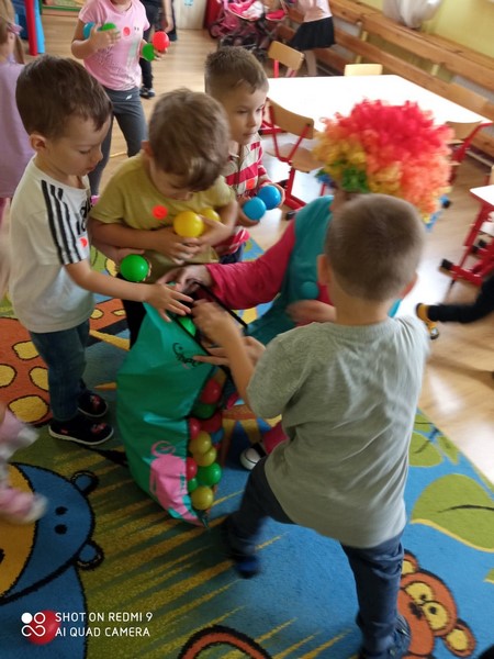 20 września celebrują swoje święto wszystkie przedszkolaki, tak było i u nas. Tego dnia odwiedził nas klaun i rozbawił dzieci wspólnymi grami i zabawami. Uśmiech dzieciom nie znikał z twarzy, na koniec nie zabrakło słodkiego poczęstunku.