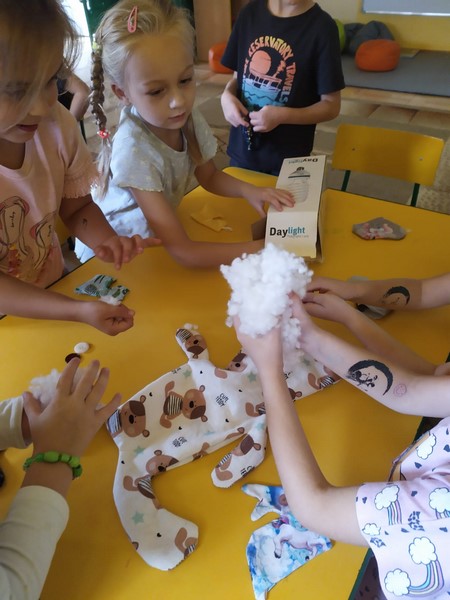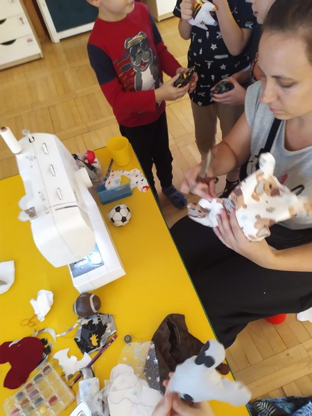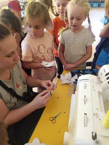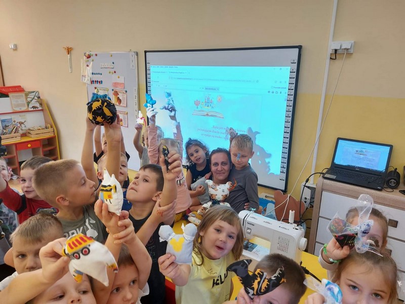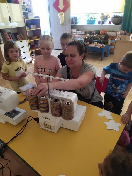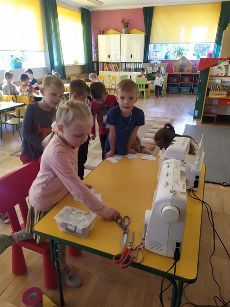 Smerfy poznały zawód krawcowej, a jednocześnie wykonały zadanie z projektu w jakim udział bierze przedszkole "Magiczna moc bajek" i wykonały maskotkę, która będzie towarzyszyła nam przez cały rok. Bardzo dziękuję mamie Jurka czyli Pani Ewie Malec, która poświęciła nam swój cenny czas i z wielką cierpliwością szyła dla każdego coś innego. Dzieci wybrały sobie szablony i wycięły, a Pani Ewa dała życie tym pięknym maskotkom poprzez wzorzyste materiały i piękne dodatki.