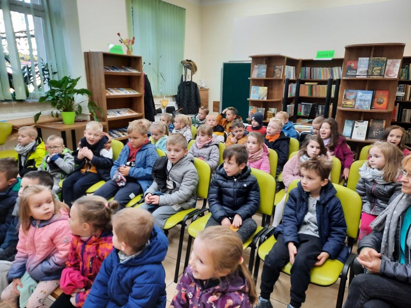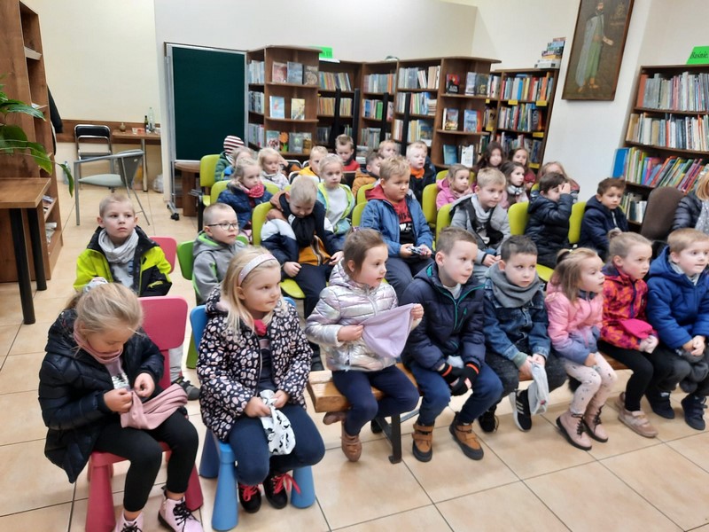 Tygryski i Motylki w bibliotece dla dzieci.