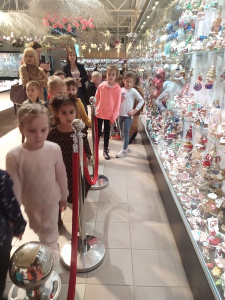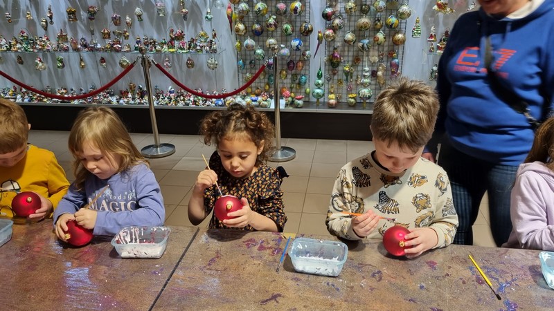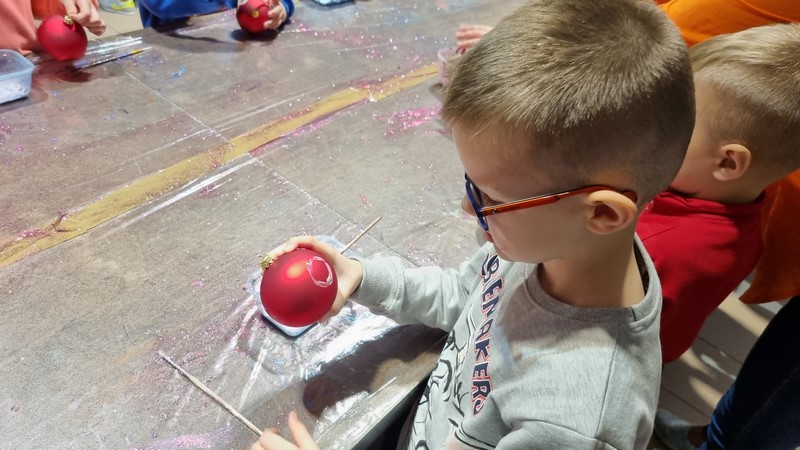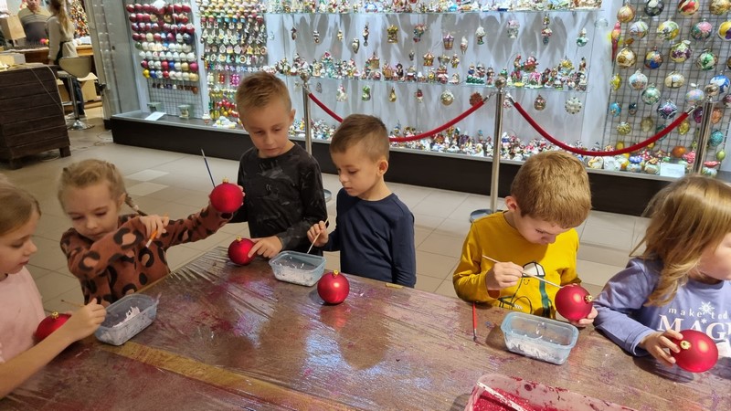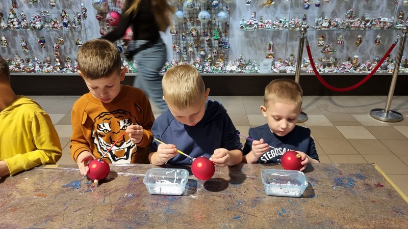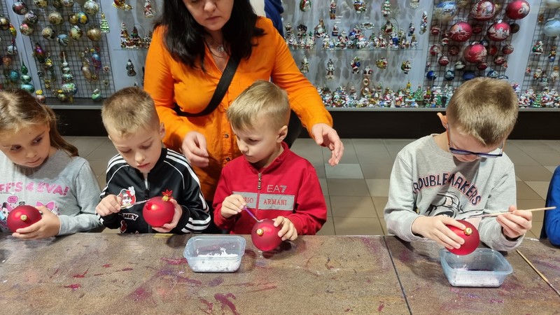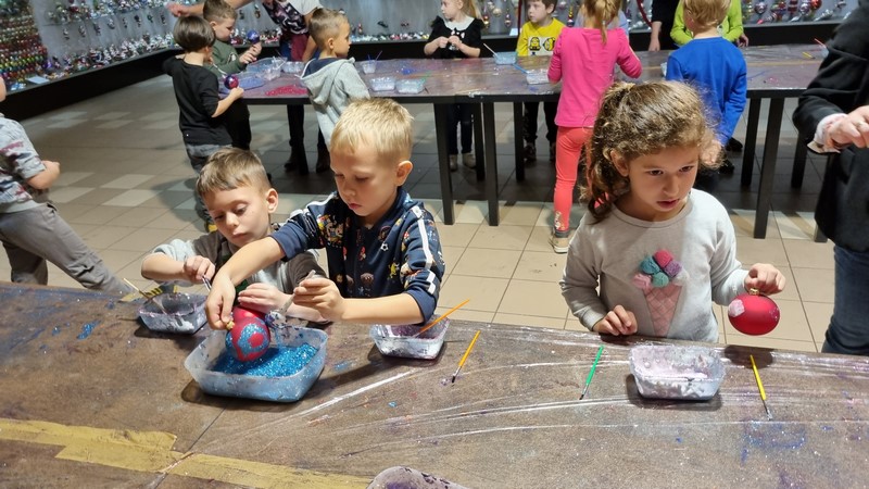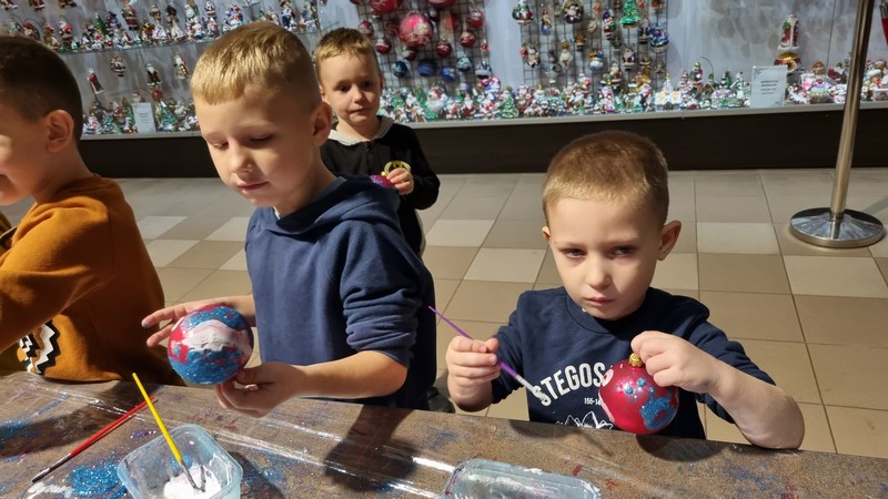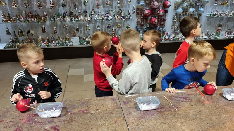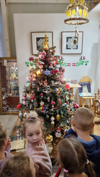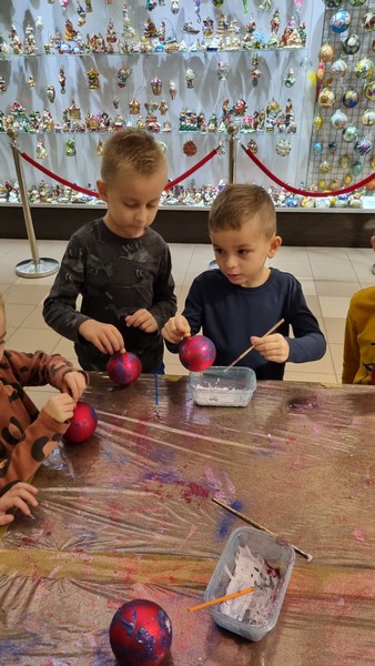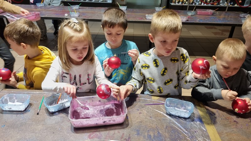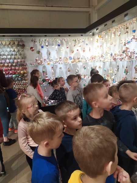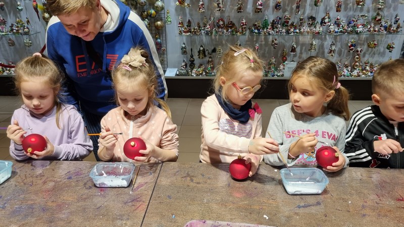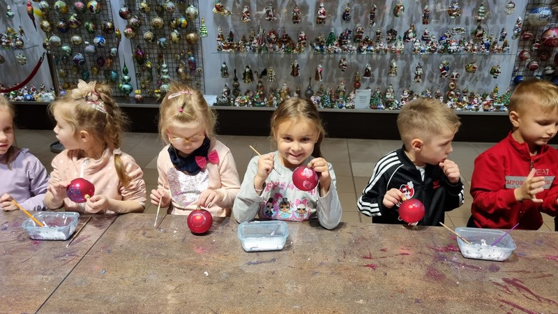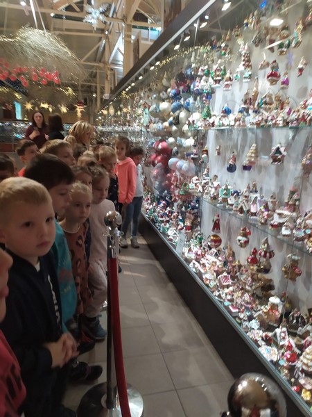 Motylki i Smerfy 27 października odwiedziły Muzeum Bombki Choinkowej w Nowej Dębie dowiedzieliśmy się jak powstaje bombka. Mogliśmy zobaczyć różne style ubierania choinek. I co najważniejsze zrobiliśmy swoją bombkę.