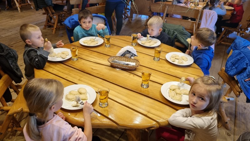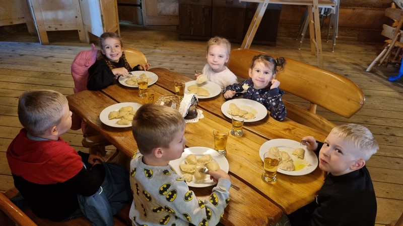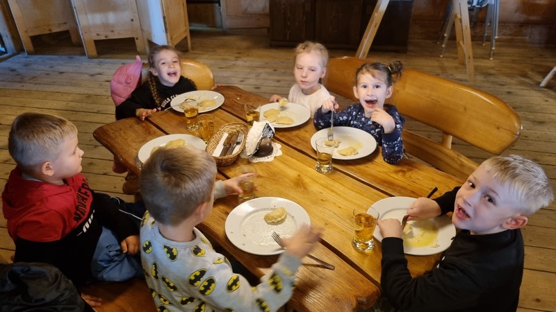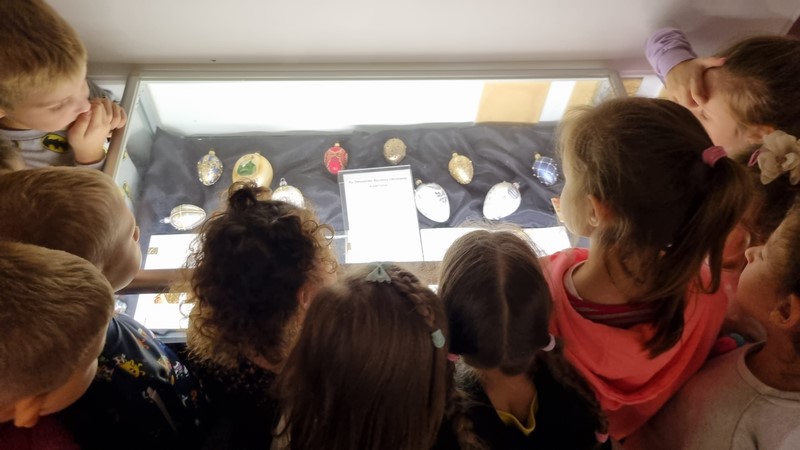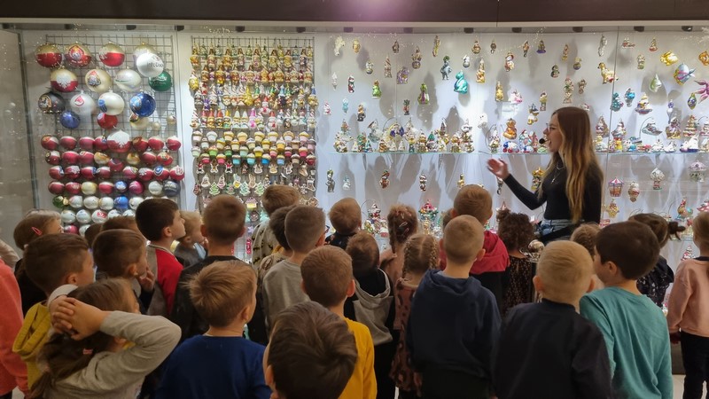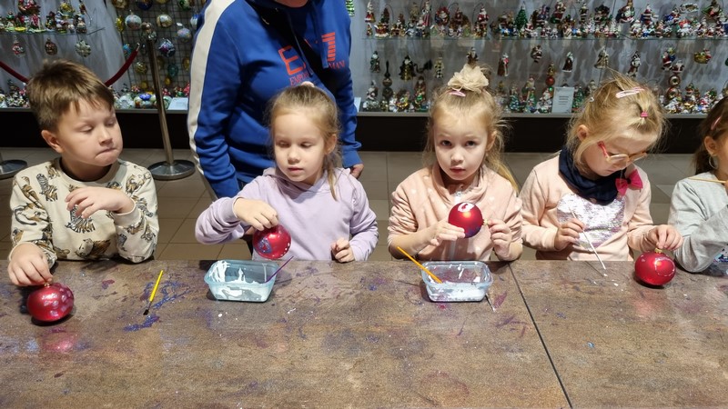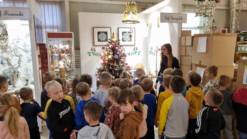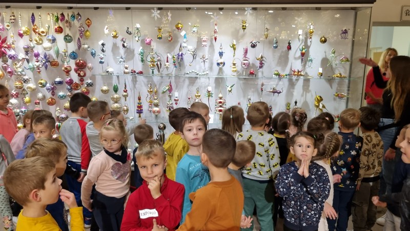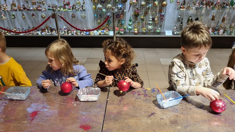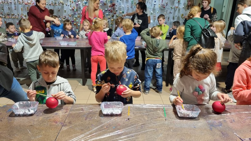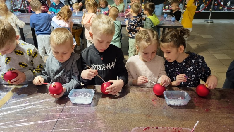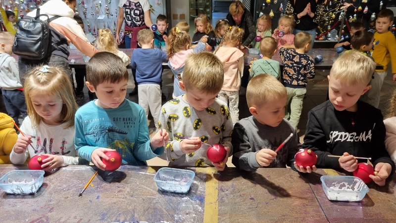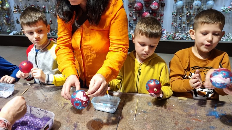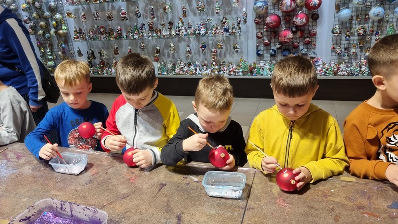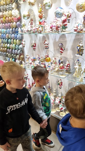 Motylki i Smerfy 27 października odwiedziły Muzeum Bombki Choinkowej w Nowej Dębie dowiedzieliśmy się jak powstaje bombka. Mogliśmy zobaczyć różne style ubierania choinek. I co najważniejsze zrobiliśmy swoją bombkę.