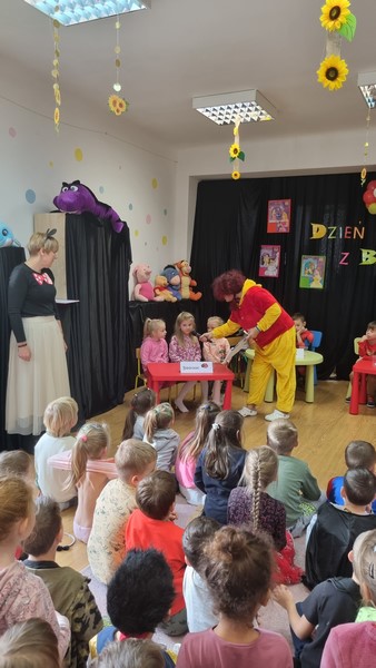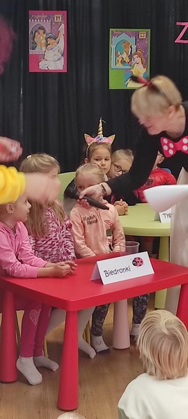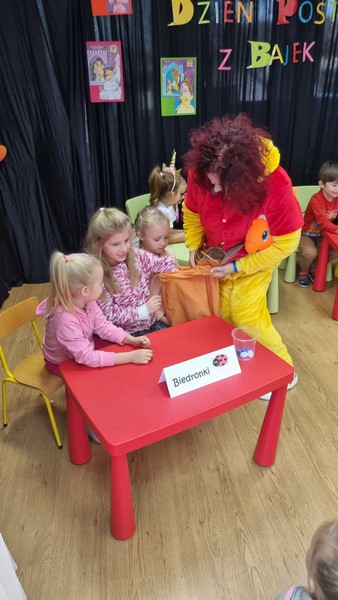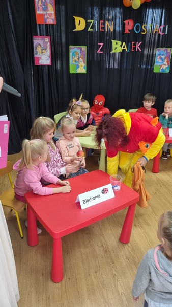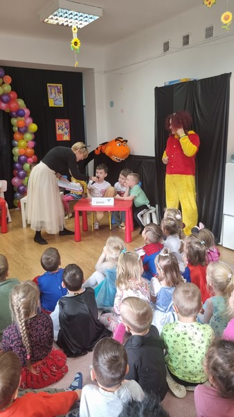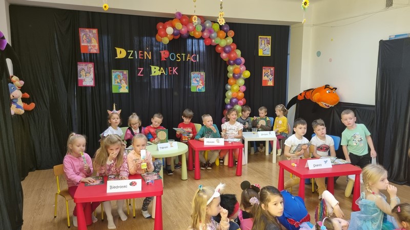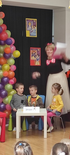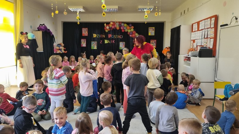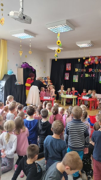 Bajki towarzyszą nam od najmłodszych lat, rozweselają i bawią, ale też przekazują ważne prawdy życiowe. Pamiętajmy, że czytając dzieciom bajki rozwijamy ich wyobraźnię, fantazję, pamięć i wzbogacamy słownictwo. Bajkowe postacie sprawiają, że świat dziecka staje się radosny i kolorowy. Tego dnia nasze przedszkole zorganizowało zabawy wymagające wykazania się znajomością treści bajek, tych znanych i mniej znanych, m.in. dzieci rozwiązywały zagadki, rozpoznawały po rekwizycie, było ,,Disko u księcia", muzyczne zgadywanki bajkowe. Nagrody książkowe zostały pozyskane z projektu "Narodowy program rozwoju czytelnictwa".