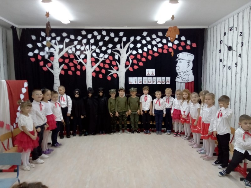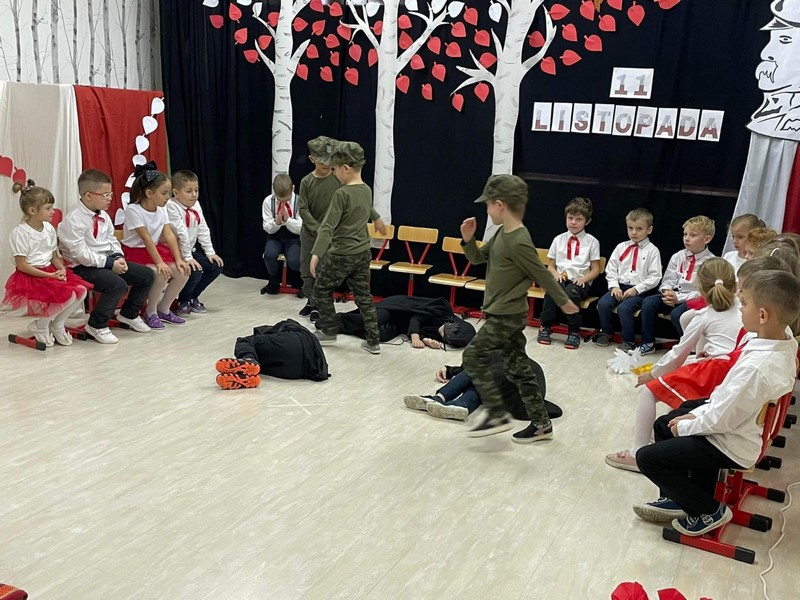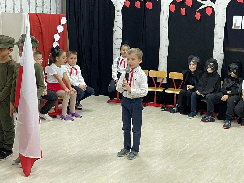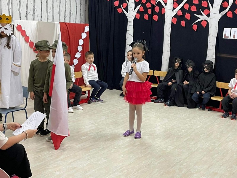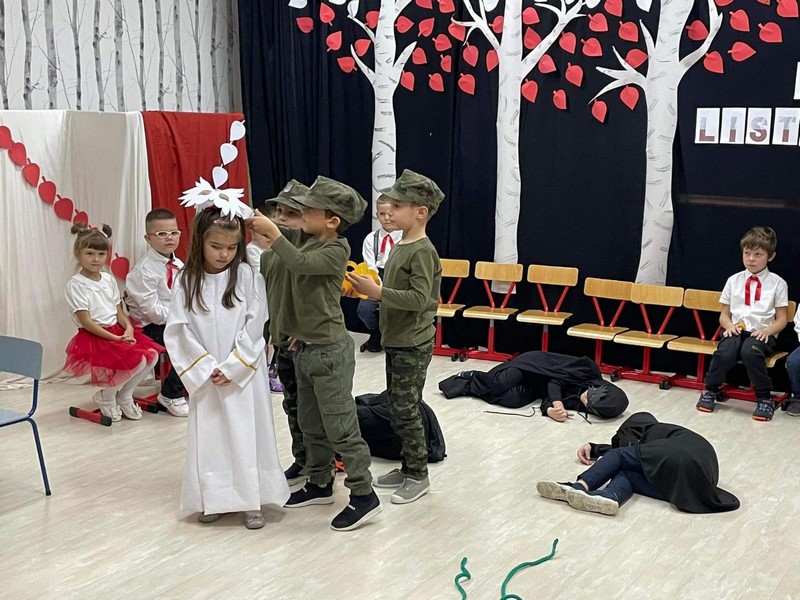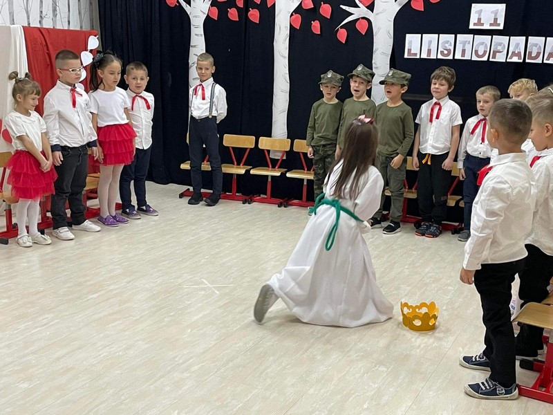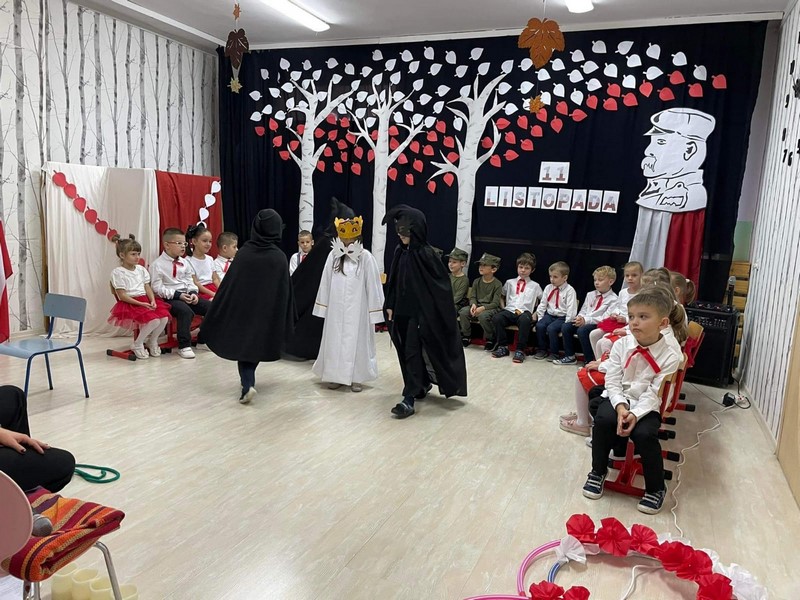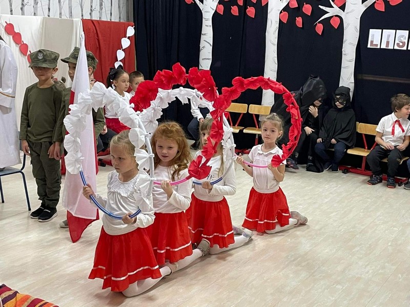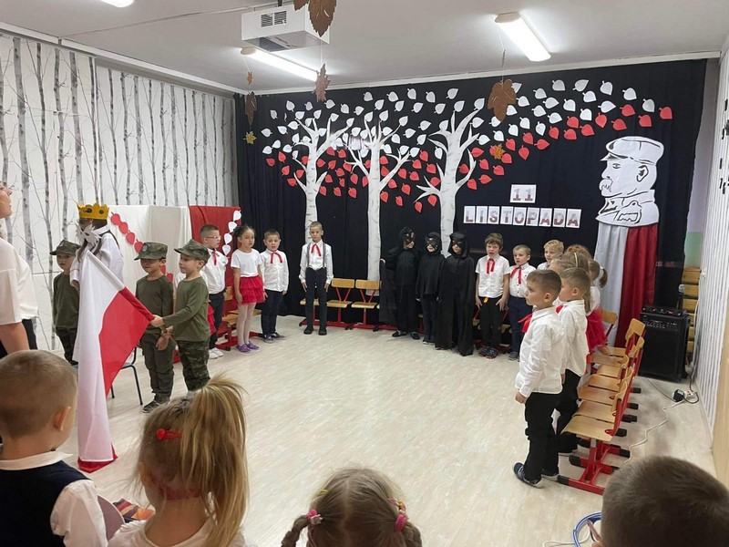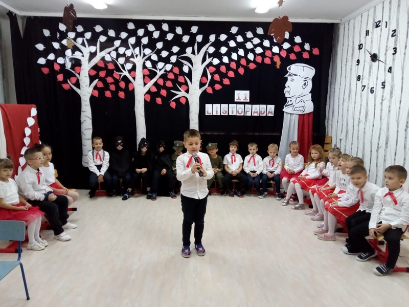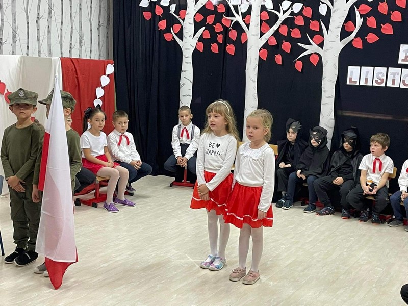 10.11 cała społeczność przedszkola oraz rodzice i bliscy naszych starszakòw - SKRZATÓW uczestniczyli w inscenizacji słowno - muzycznej z okazji 104 rocznicy odzyskania przez Polskę Niepodległości. Dziękuję Rodzicom za obecność, dobre słowo i pomoc w przygotowaniu strojów