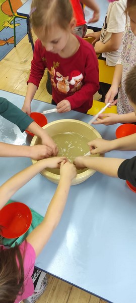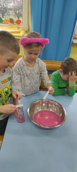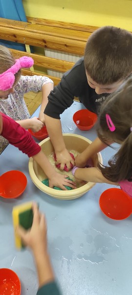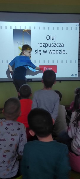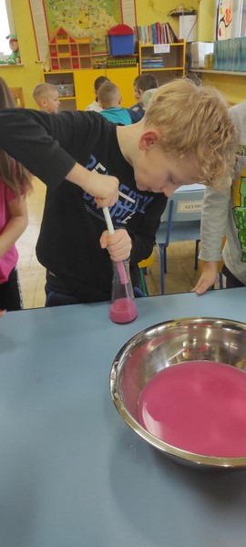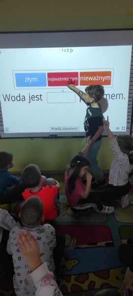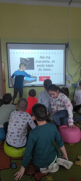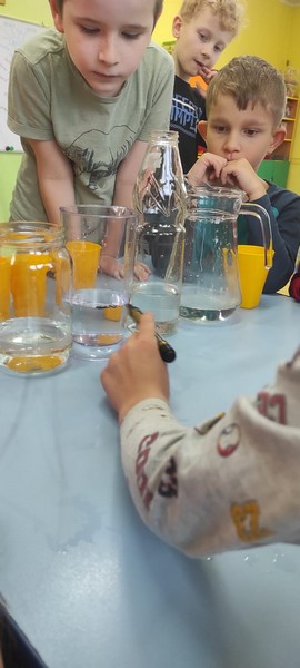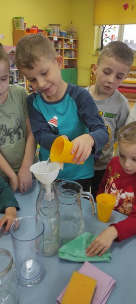 DOTYKAM, BADAM, POZNAJĘ jedno z zajęć z naszej innowacji. Dziś SKRZATY poznawały wodę. Badaliśmy, oglądali, porównywaliśmy objętość w różnych naczyniach, wyciągaliśmy wnioski. Były też zabawy w przelewanie wody różnymi sposobami - radości było co nie miara. Dzieci przypomniały sobie obieg wody w przyrodzie, jej znaczenie dla człowieka oraz sposoby jej ochrony. Na zakończenie obejrzeliśmy film i wykonaliśmy zadania interaktywne.