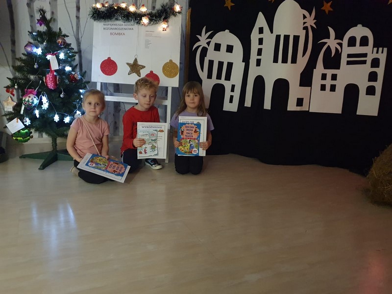 Konkurs plastyczny ,, Najpiękniejsza Ozdoba Bozonarodzeniowa BOMBKA'' adresowany jest co roku do dzieci z naszego przedszkola. Konkurs od wielu lat cieszy się dużym zainteresowaniem wśród dzieci i rodziców. Wszystkie prace dostarczone do organizatorów wzbudziły zachwyt jury, które oceniając prace wzięło pod uwagę kreatywnosc i umiejętność łączenia ze sobą różnych technik plastycznych i materiałów oraz oryginalne ujęcie tematu. Laureaci konkursu oraz wyróżnione dzieci otrzymały dyplomy i nagrody.Dziekujemy wszystkim dzieciom i rodzicom za udział w konkursie i życzymy dalszych sukcesów. WESOŁYCH ŚWIĄT